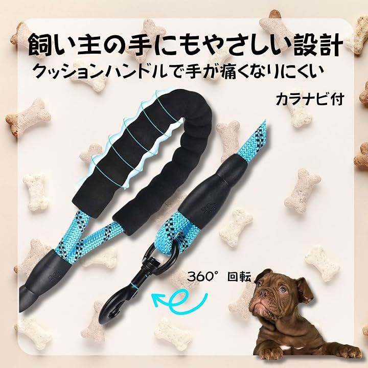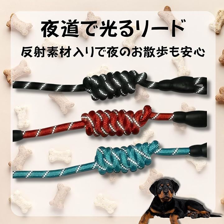 犬用 リード 丈夫で切れにくい 耐引っ張り クッションハンドル付き お散歩用リード カラビナ付