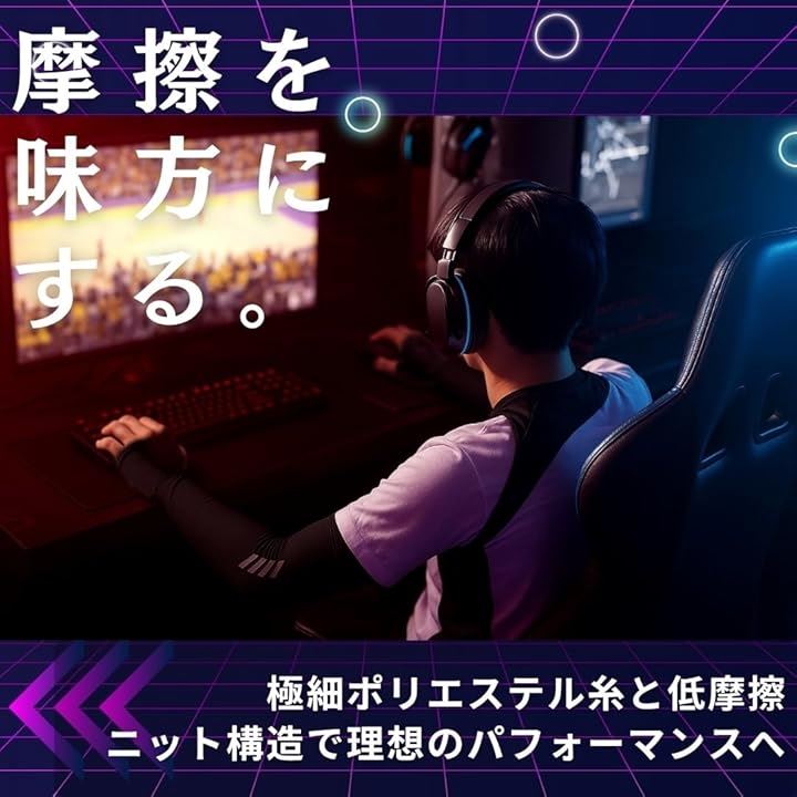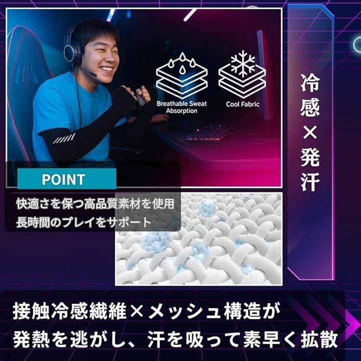 ゲーミングアームカバー 冷感 摩擦軽減 fps ゲーム 吸水速乾 コンプレッション 2枚セット