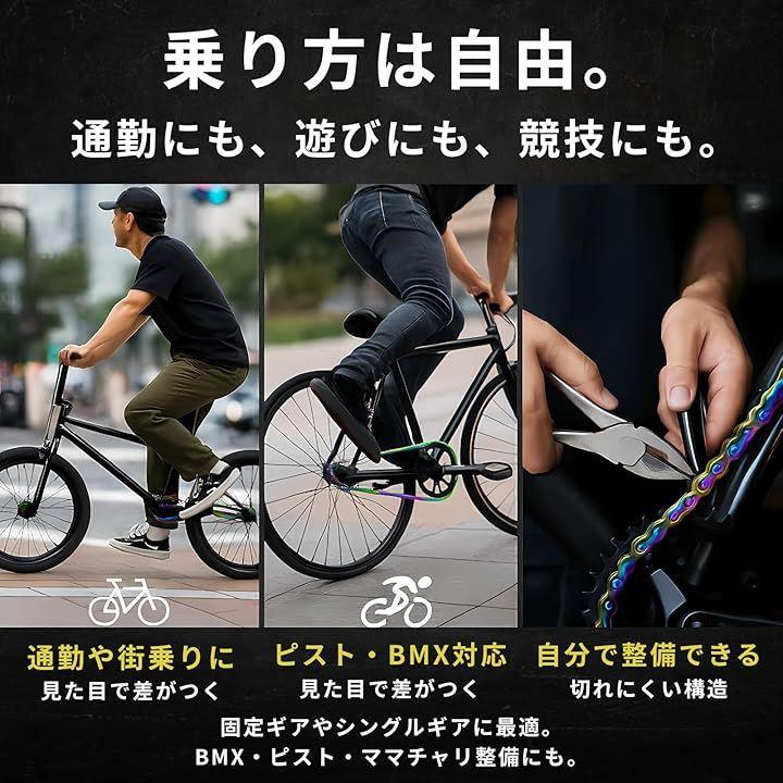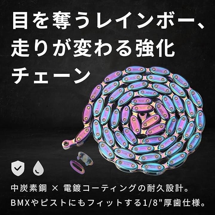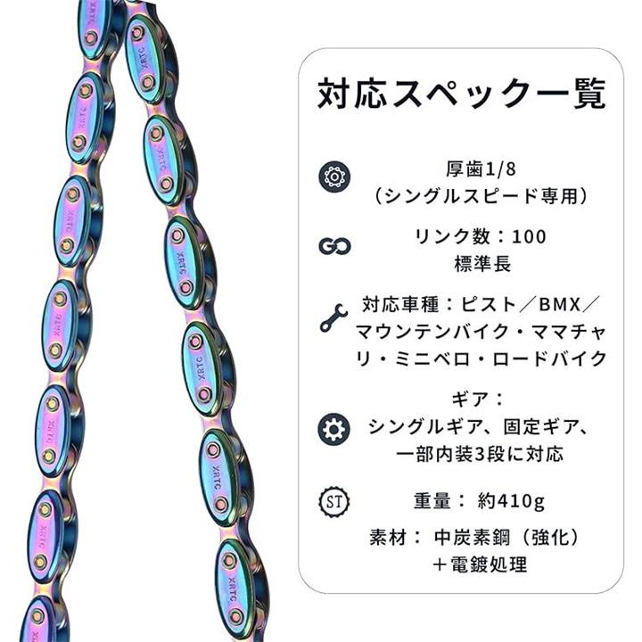 厚歯1/8 チェーン 自転車用 シングルスピード ピスト/BMX対応 中炭素鋼製 強化チェーン 伸びにくい 切れにくい 防錆加工 カスタム向け