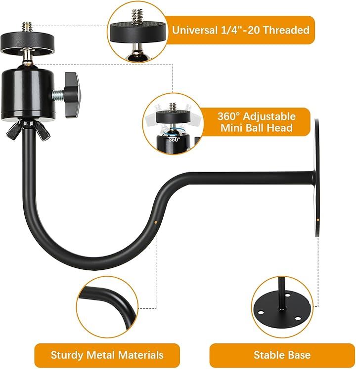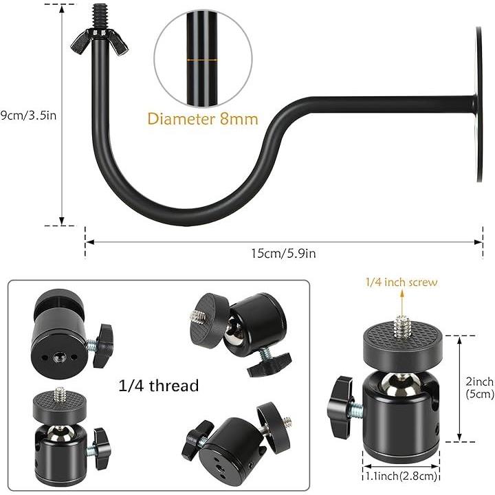 防犯カメラウォールマウント 3個セット 防犯カメラスタンド 1/4インチネジ 360°回転 屋内/屋外対応 壁/天井/木などに設置可能