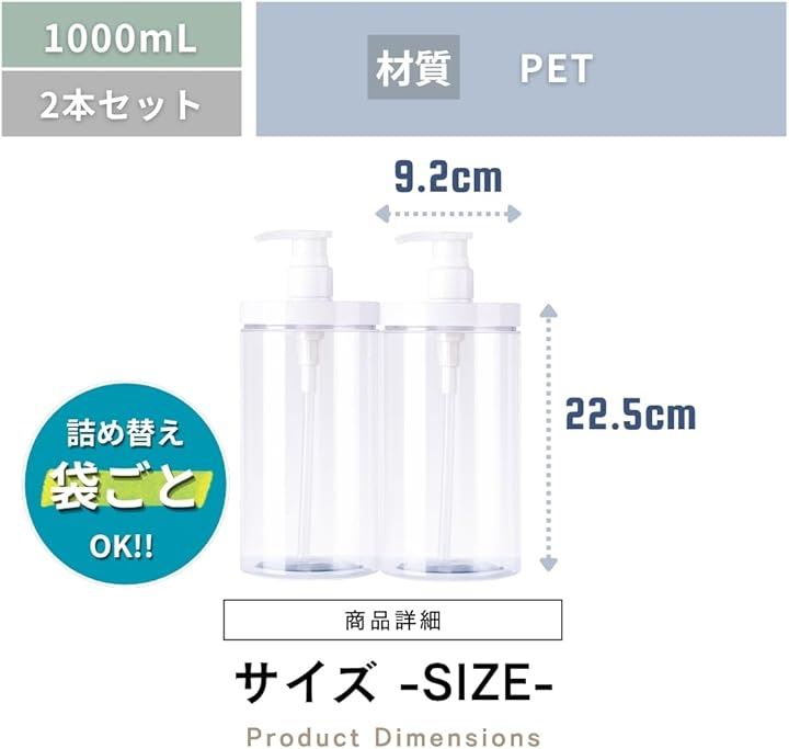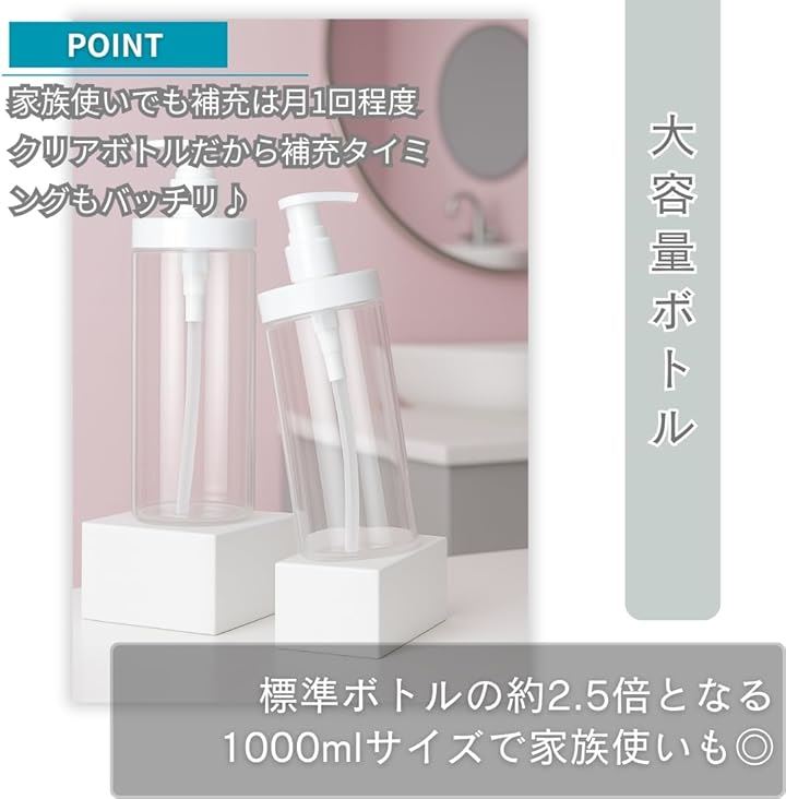 シャンプーボトル 大容量 1000ml 詰め替えそのまま ディスペンサーボトル