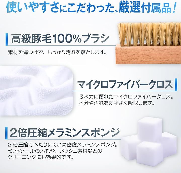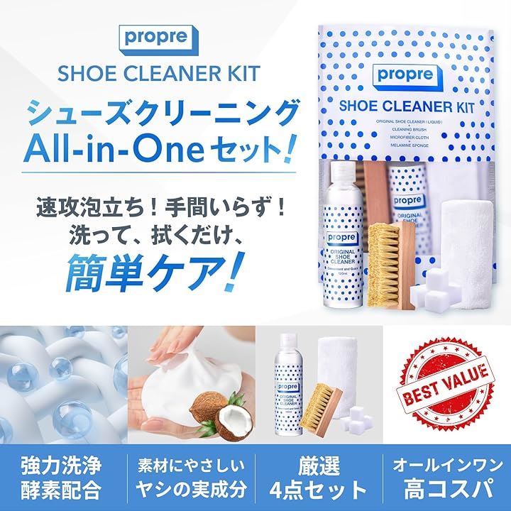 propre SHOE CLEANER KIT スニーカー クリーナー 靴 洗剤 靴洗い 4点 セット 靴磨き シューズ 120ml オリジナルクリーナー リキッドタイプ &ブラシ&クロス&スポンジセット