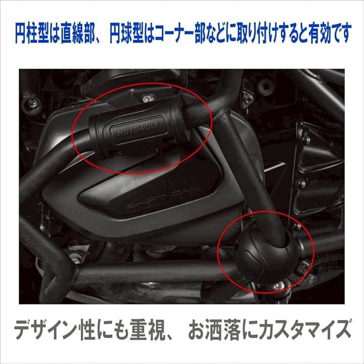 「商品内容」・本体2個セット (固定用バンド付属)「材質」・シリコン製「本体サイズ」・円柱型/100mmx50mm・円球型/70mmx63.5mm「本体内径」・22mm/25mm/28mm の3種類をご用意しております「カラー」・ブラック「形状」・円柱型と円球型の2種類をご用意しております「取り付け箇所」・バイクのフロントガード、リアガード、ハンドルバー、電動自転車の補強材として使用「取り付け方法」・付属のバンドで固定するタイプ、特殊工具などは不要であり女性の方でも負荷なく取り付けが可能です「適合車種」・本商品は汎用タイプとなりますのでサイズが合えば様々なバイク、電動自転車にご使用が可能で御座います。