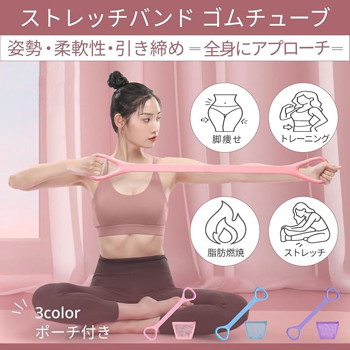ストレッチバンド ゴムチューブ ストレッチベルト ゴムバンド トレーニングチューブ 筋トレグッズ 肩甲骨 ダイエットグッズ