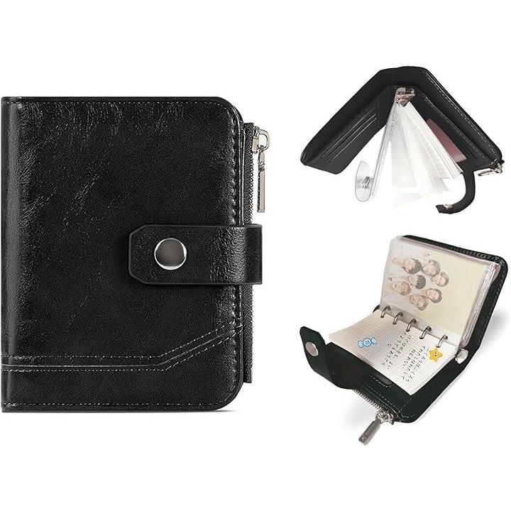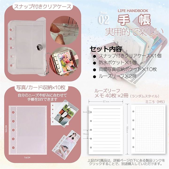 新型 手帳式 財布 レディース 二つ折り メンズ ビジネス手帳 推し活 写真 カード収納 小銭入れなし 可愛い おしゃれ M5内ページ PUレザー バインダー 多機能財布