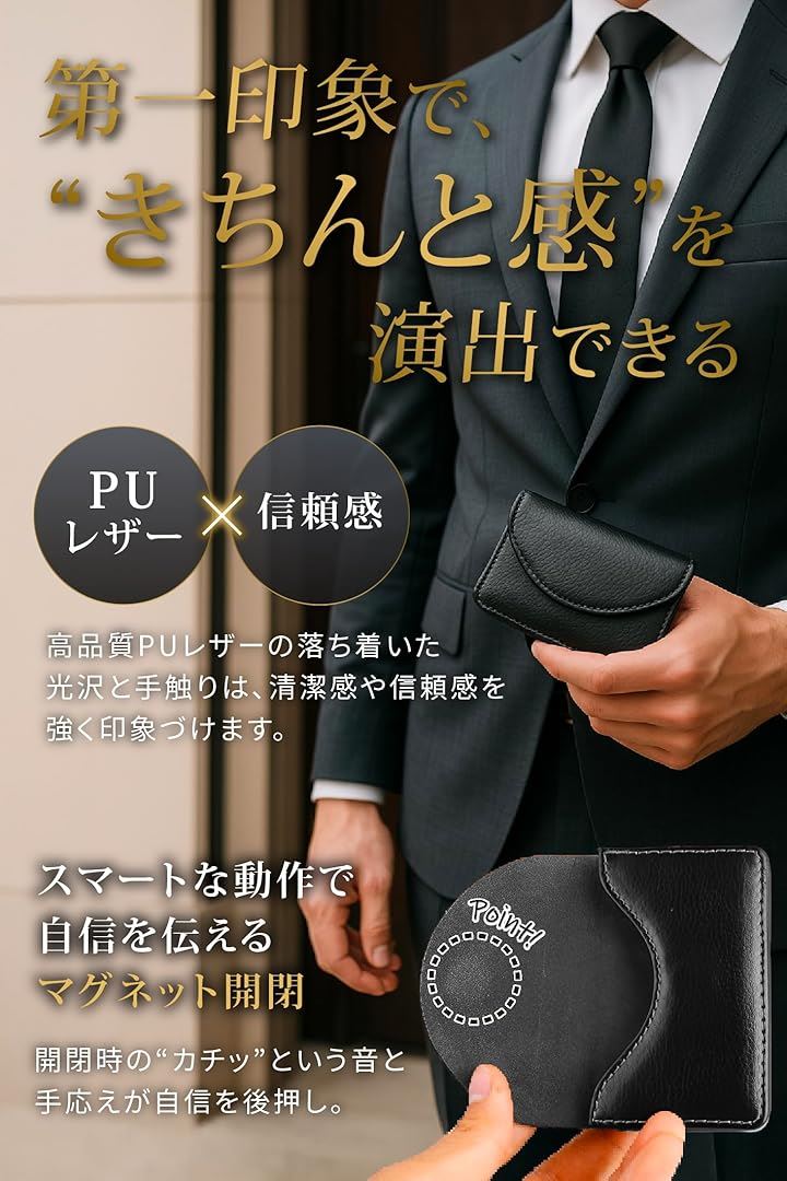 名刺入れ メンズ PUレザー 薄型 大容量 おしゃれ スリム コンパクト シンプル
