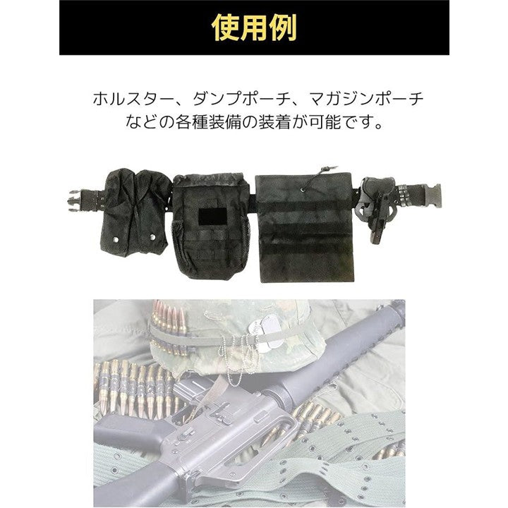 緊急時や瞬時の装備変更が求められるミリタリー・サバゲー環境においてもストレスなく操作でき、しっかり腰回りの装備を固定します。