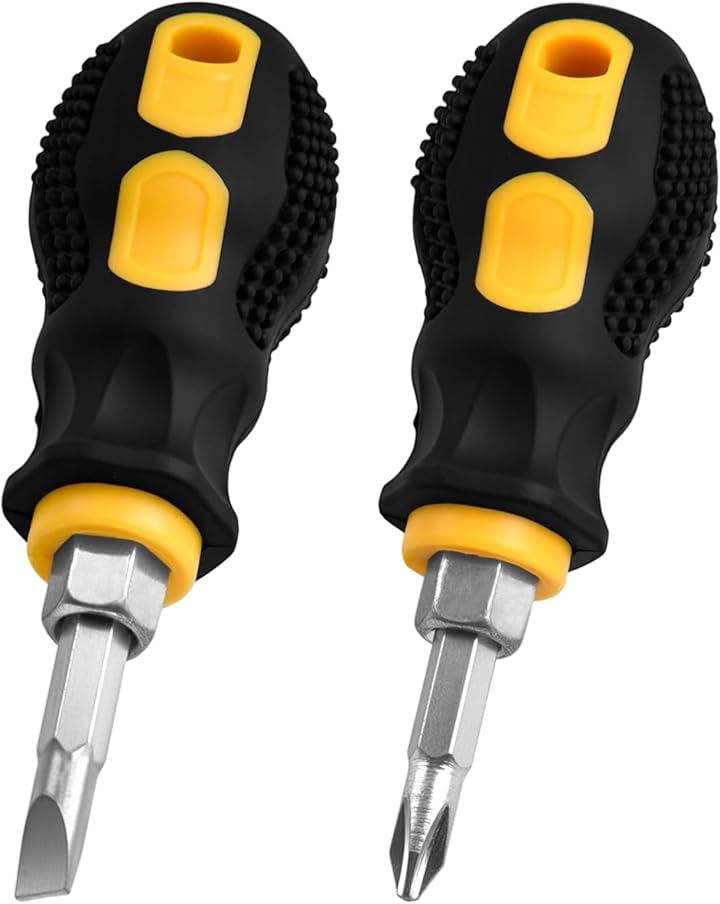 スタビー差替ドライバー 2個 角刈り クロス ショートドライバー 狭い場所の修理に最適な小型の短いポケット型磁気 プロ仕様 両頭 差替式