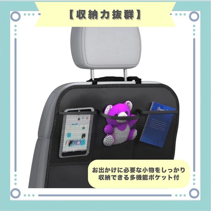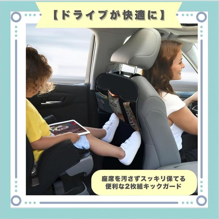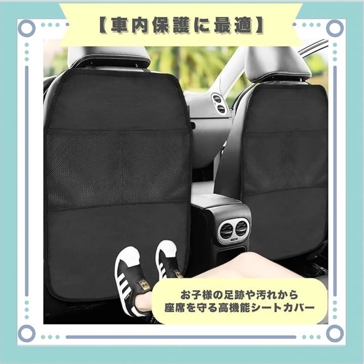 キックガード シートカバー 車 後部座席 防水 汚れ防止 収納ポケット 整理整頓 2個セット