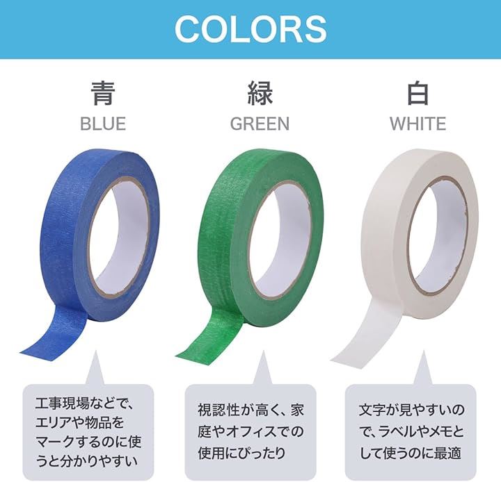 白はどんな場面でも使いやすく、緑は自然な色合いで目に優しく、青は鮮やかで元気な気分になります。