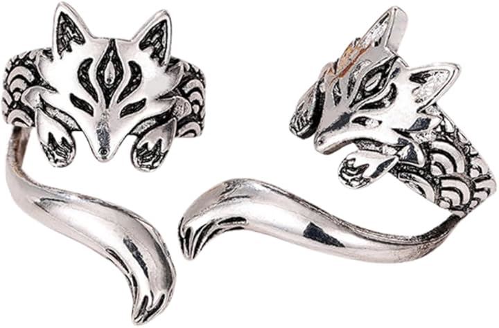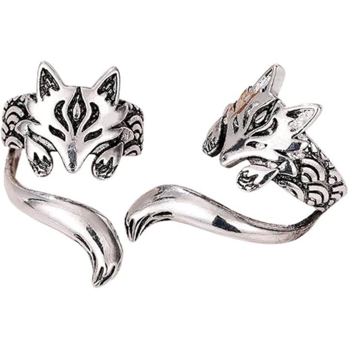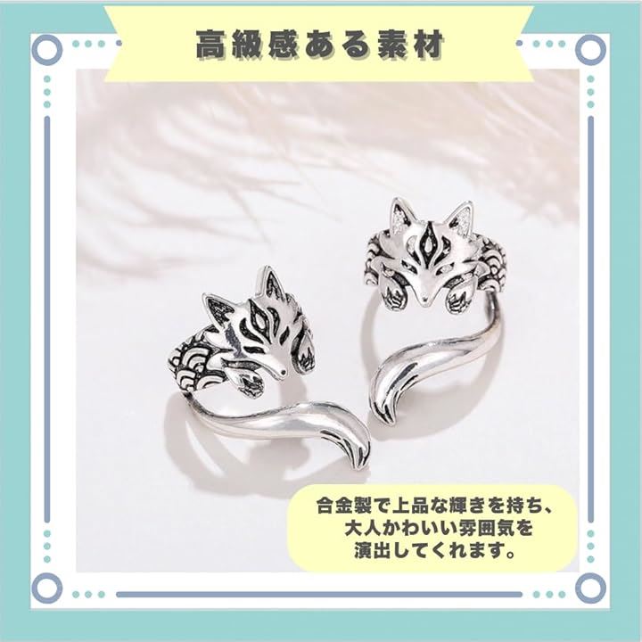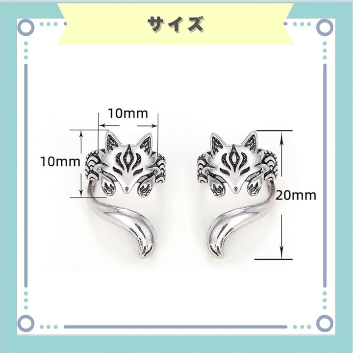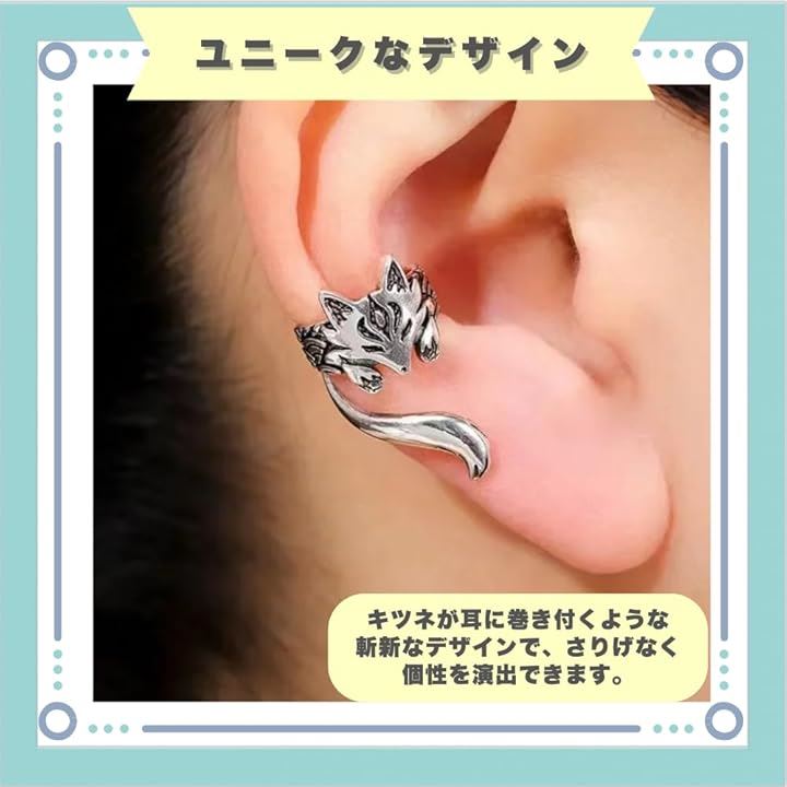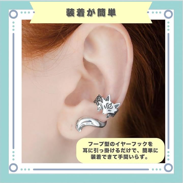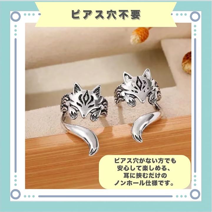 イヤーカフ イヤリング メンズ ノンホール ペア 狐 きつね 左右セット シルバー