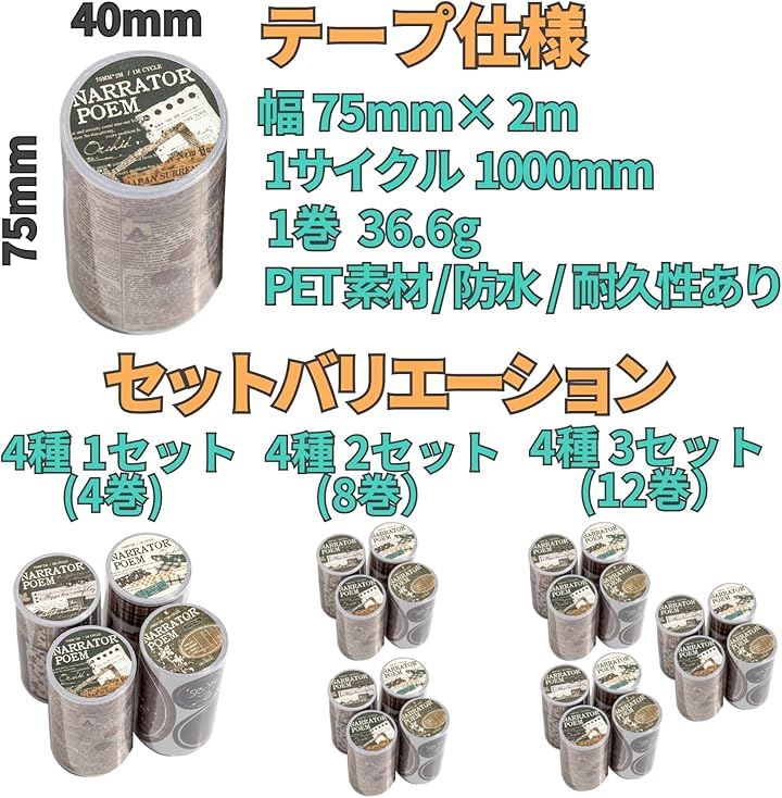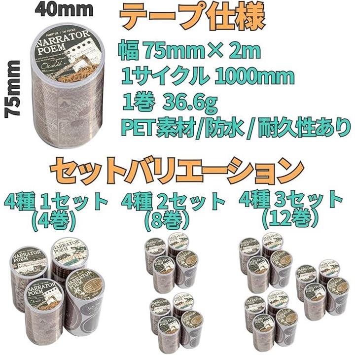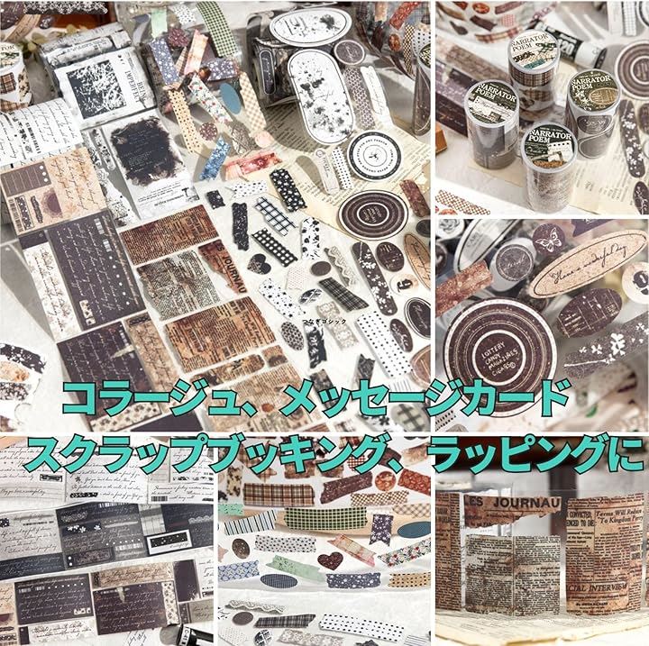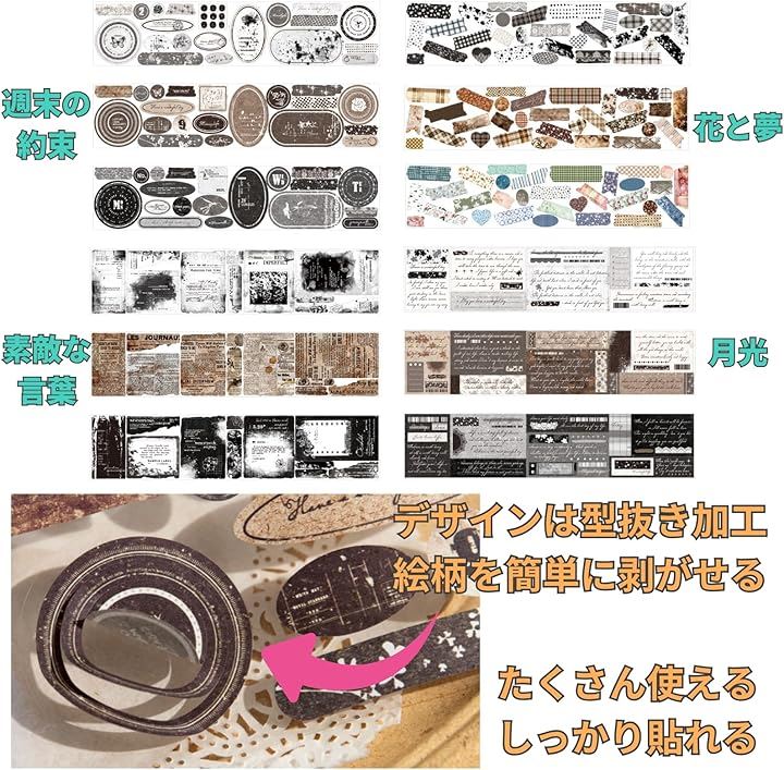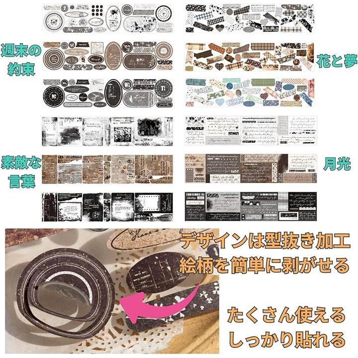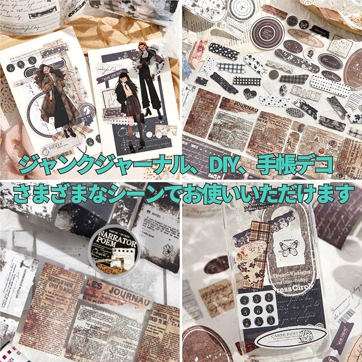 物語 ダイカット マスキング テープ 英語 レトロ 日記 手帳 スクラップ コラージュ