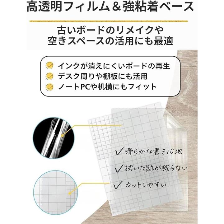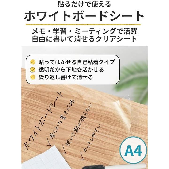 透明 ホワイトボード シート A4 クリア フィルム 貼り直し カット 可能 繰り返し使える 粘着式 メモ