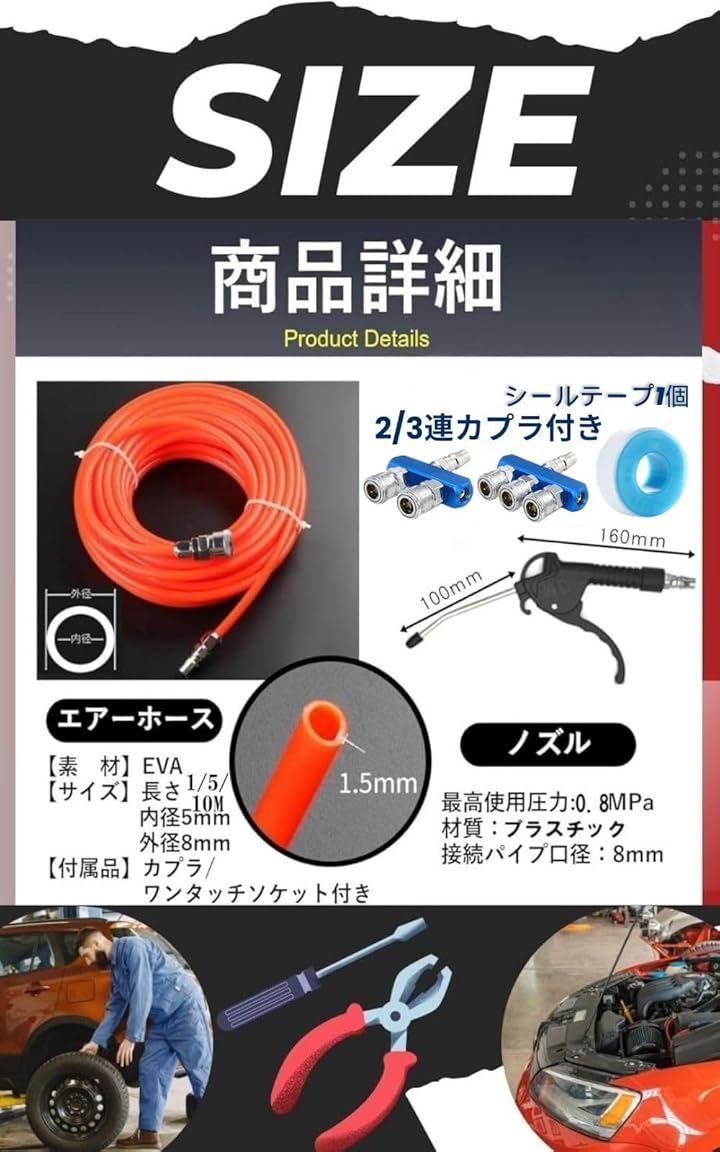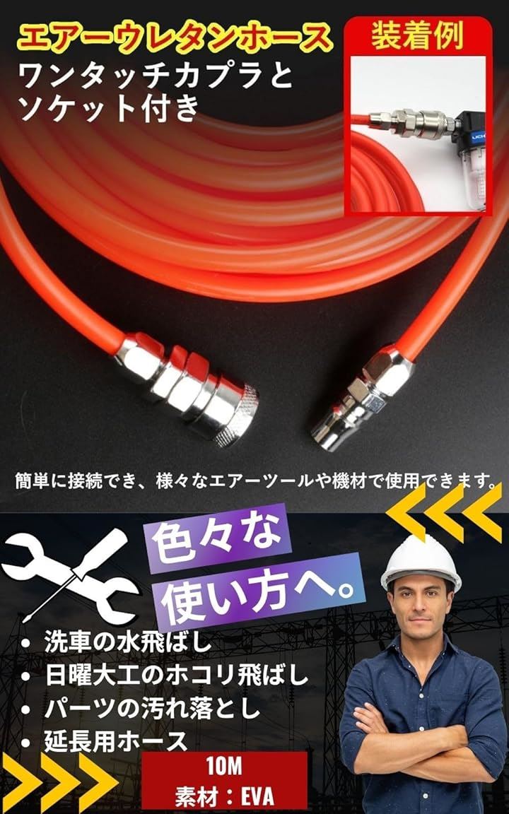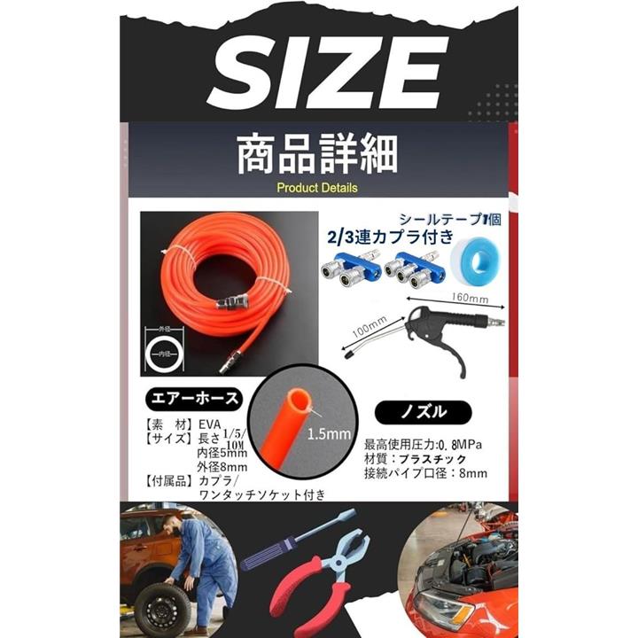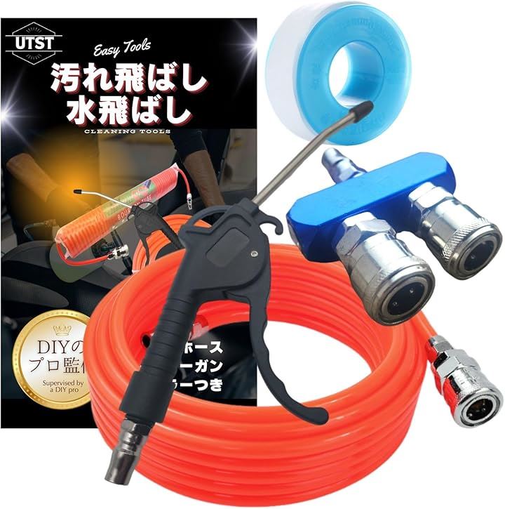 プロ監修 エアーホース 10m エアダスターガン シールテープ エアホースセット エアブローガン
