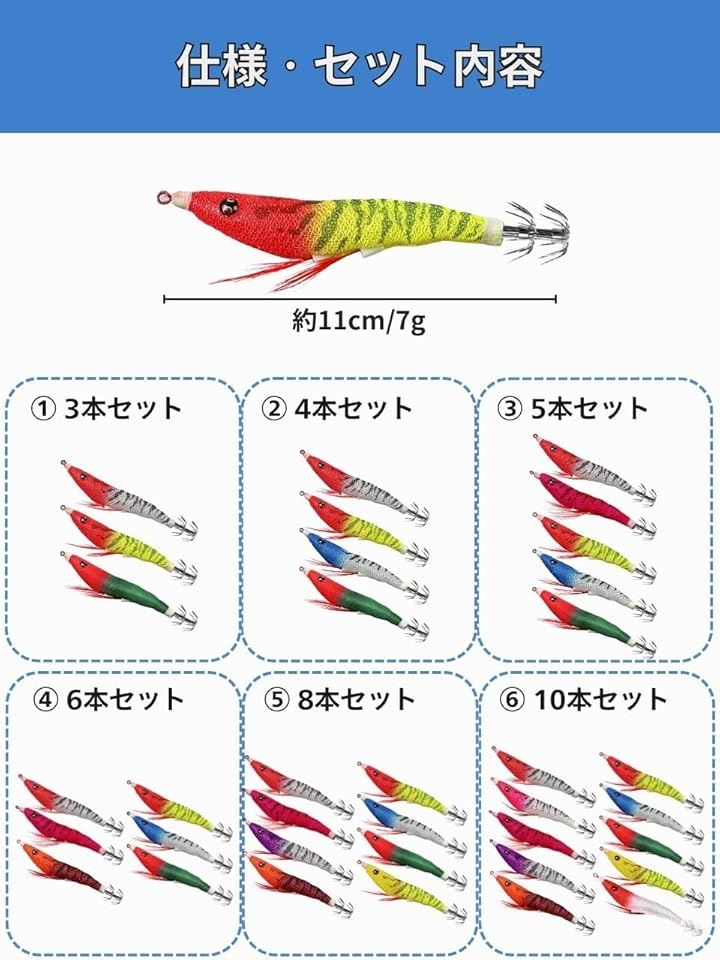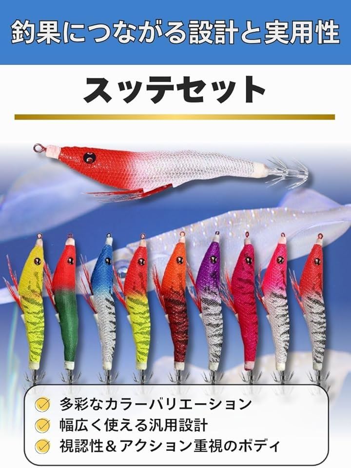 「豊富なカラーバリエーション」本商品は、イカ釣り専用に設計された「スッテ」のカラーバリエーションセットです。