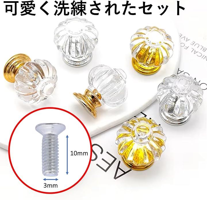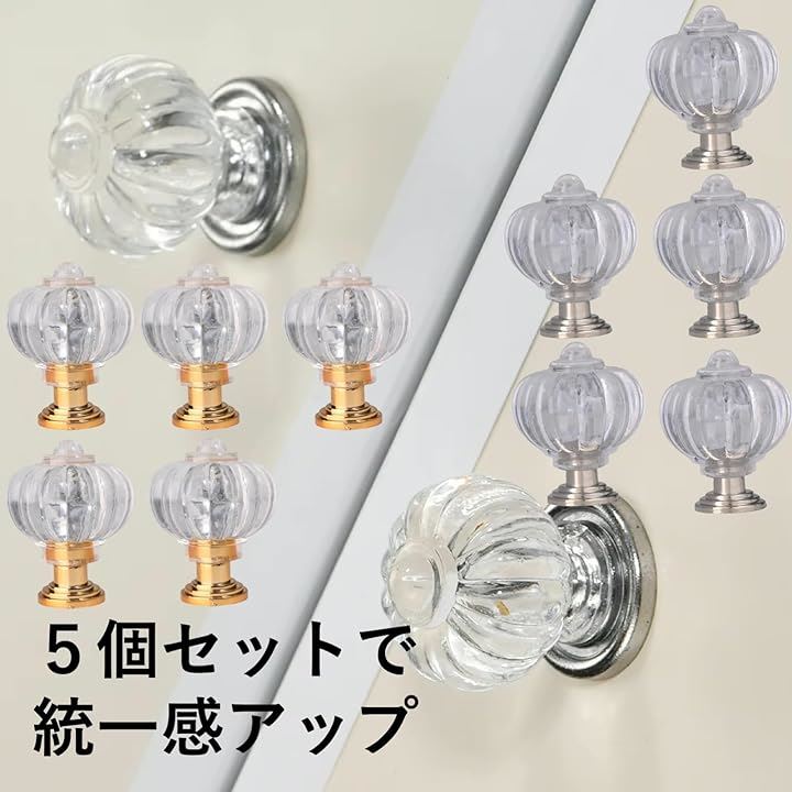 透明 取っ手 5個セット ドアノブ ネジ付き 直径25mm