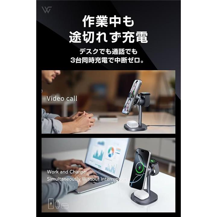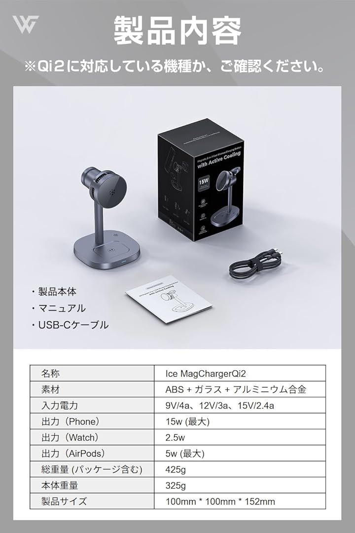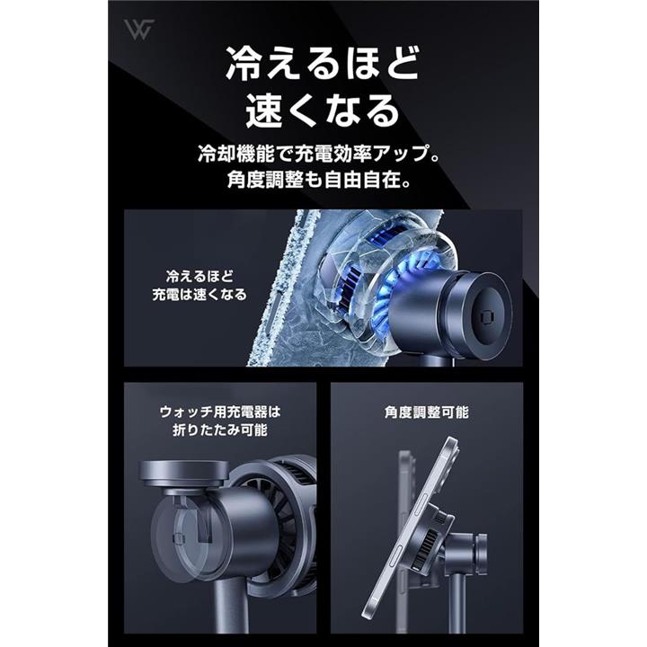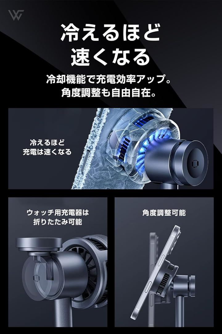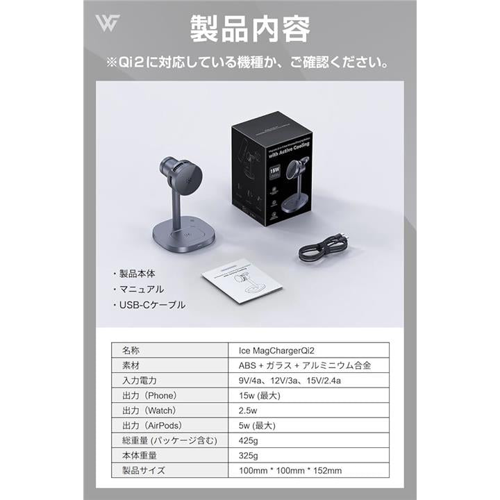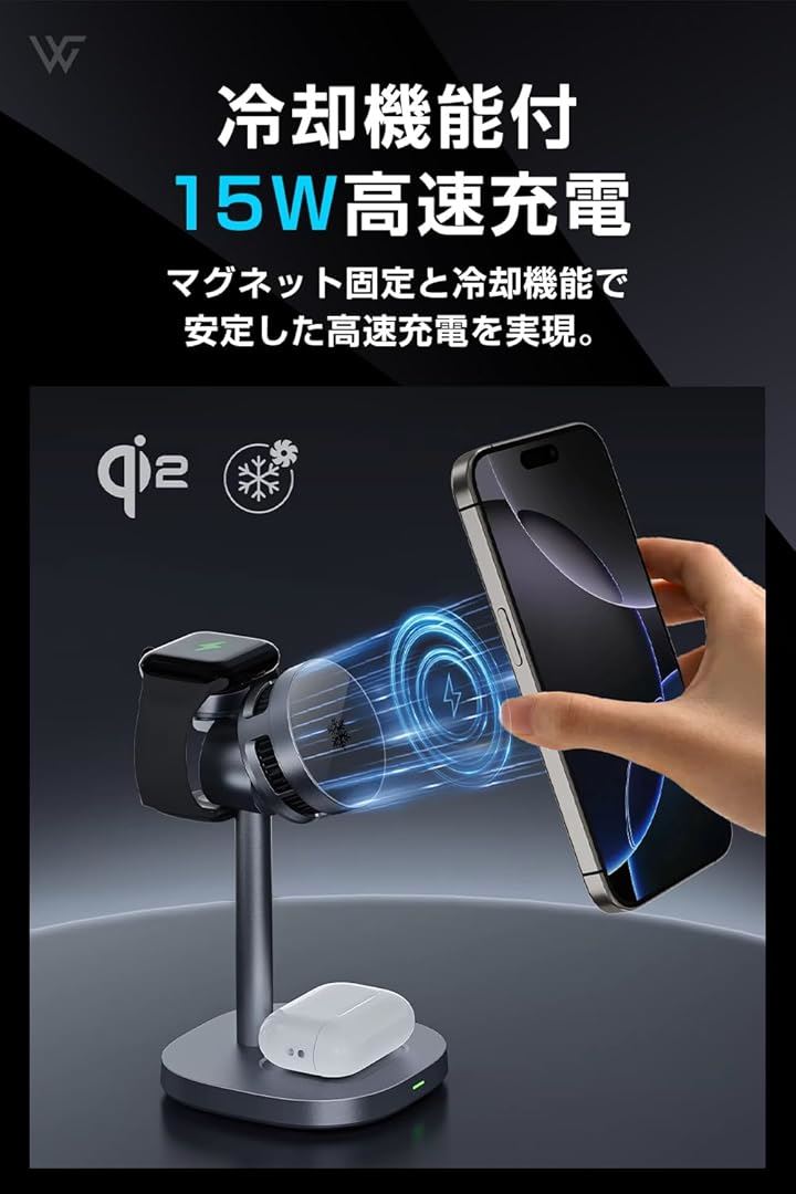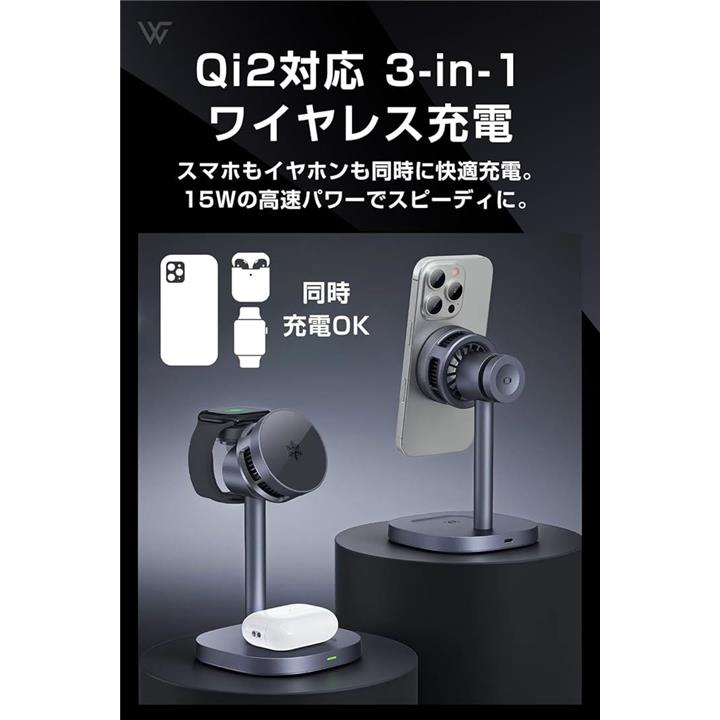 Ice MagChargerQi2 冷やす3-in-1 ワイヤレス給電ステーションQi2対応/MagSafe対応折りたたみ式 マグネット式 最大15W急速給電 iPhone 16/15/14/13/12 Apple Watch AirPods 3台同時対応