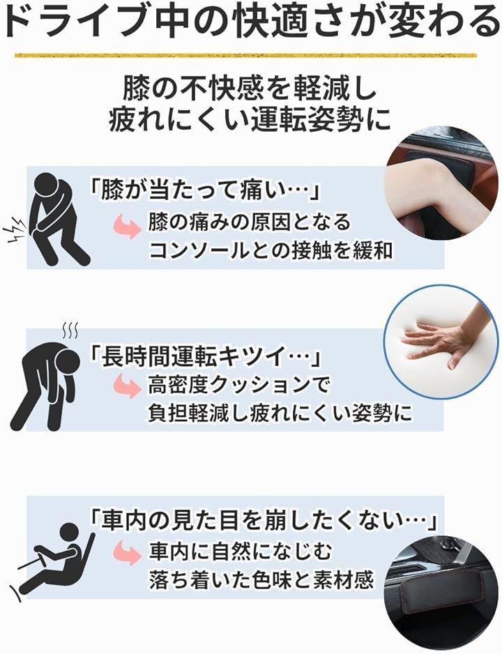 車用 ニーパッド 膝 クッション 足保護 太もも サポート 膝当て 肘置き オートコンソール