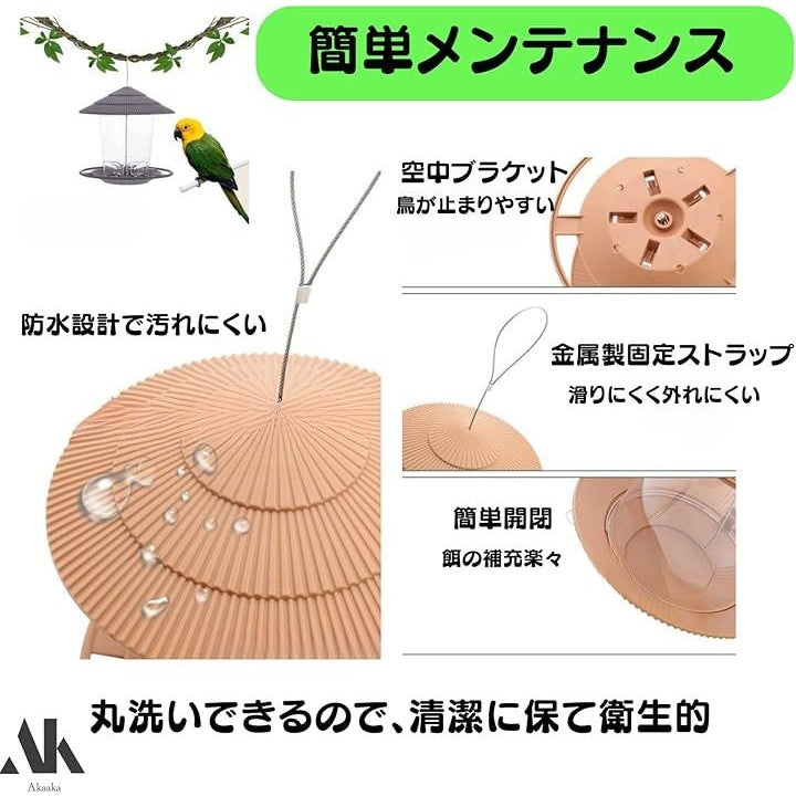 バードフィーダー 野鳥の餌台 屋外対応 吊り下げ式 鳥小屋 巣箱 小型 ブラウン