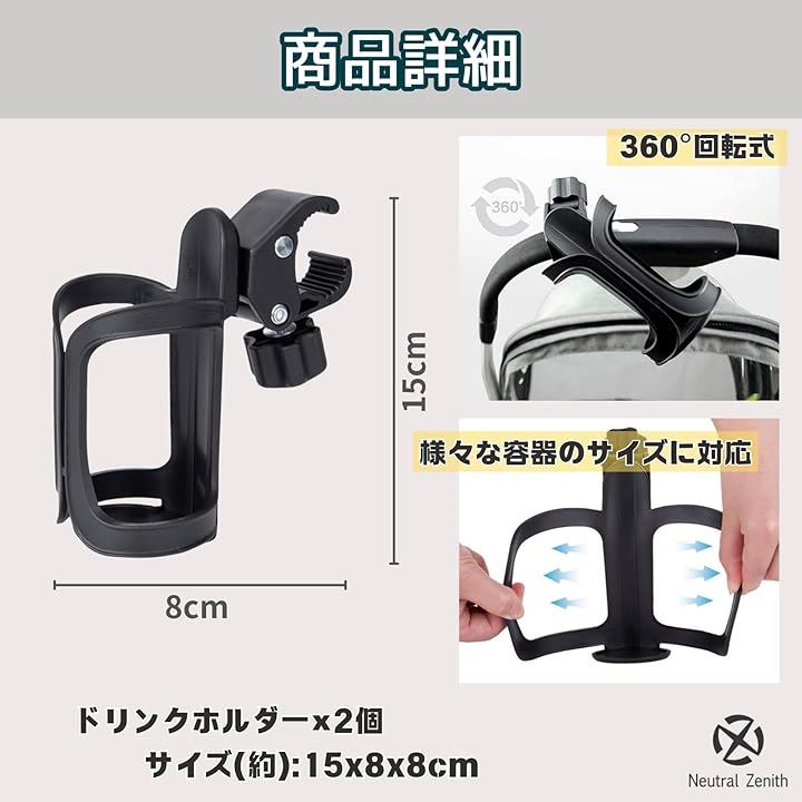 ドリンクホルダー 自転車 ベビーカー 簡単取り付け 工具不要 2個セット