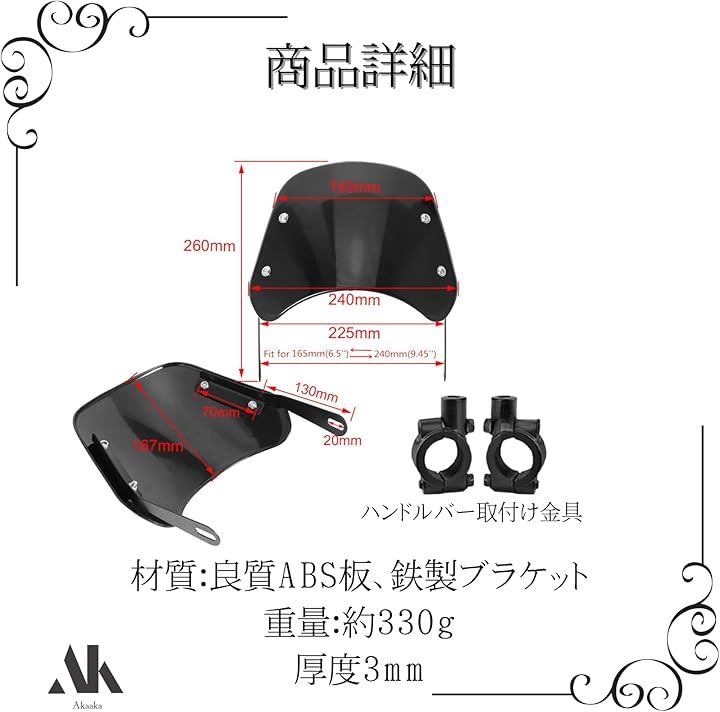 バイク風防 ウインドシールド 汎用スクリーン ハンドルバー固定式 カウル対応