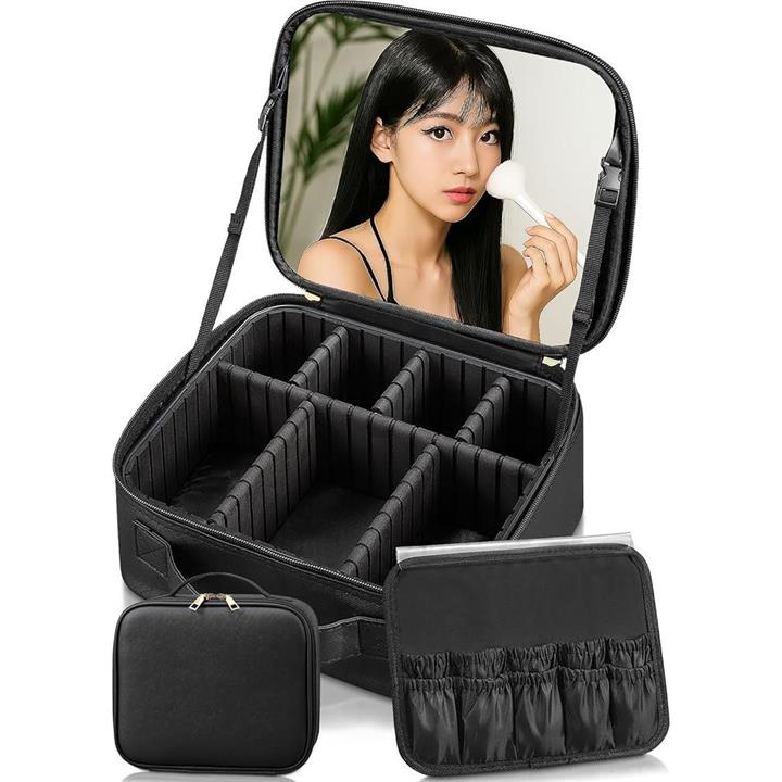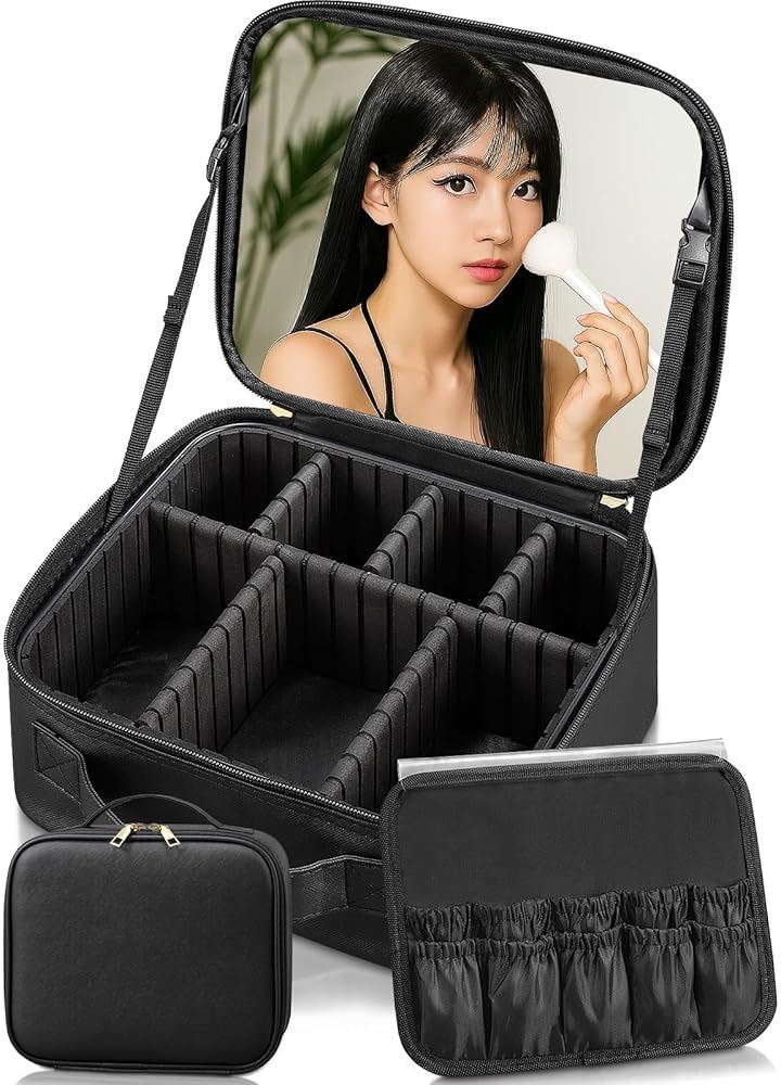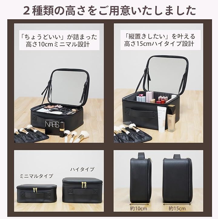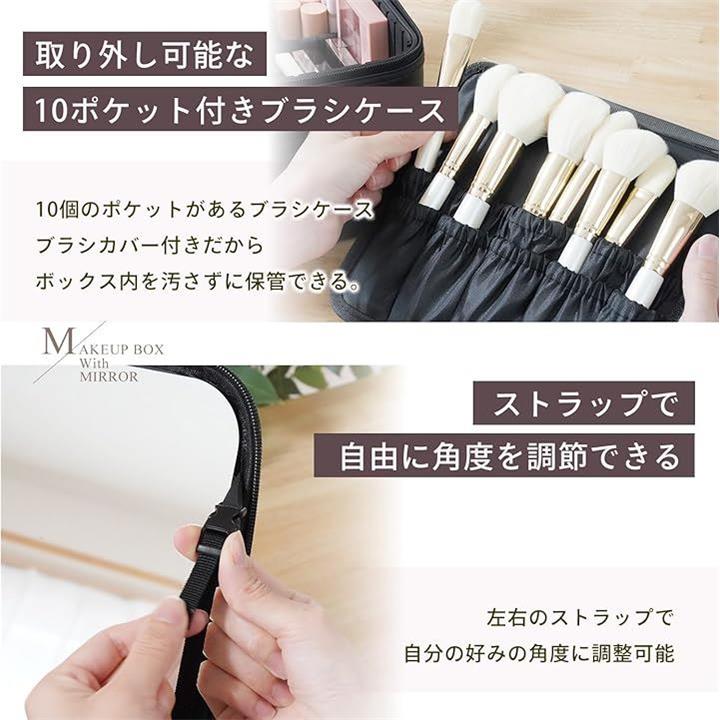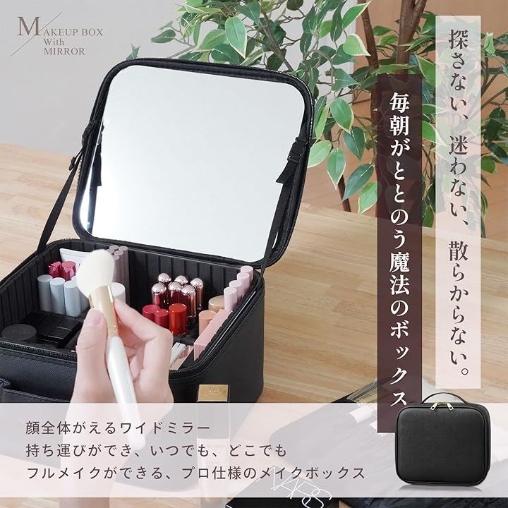 メイクボックス 鏡付き 大容量 プロ仕様 ワイドミラー 持ち運び 取っ手付き おしゃれ 可愛いコスメ収納 化粧箱 コスメケース