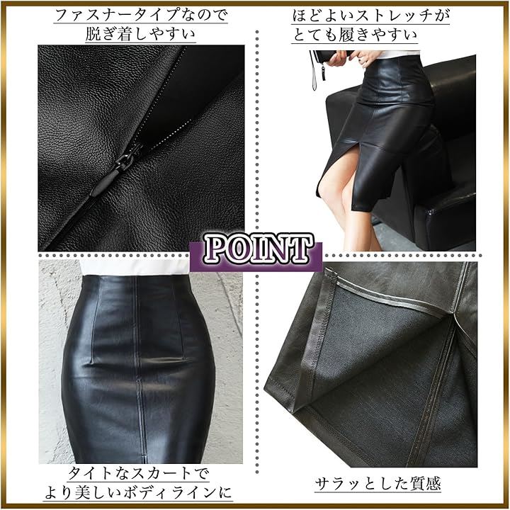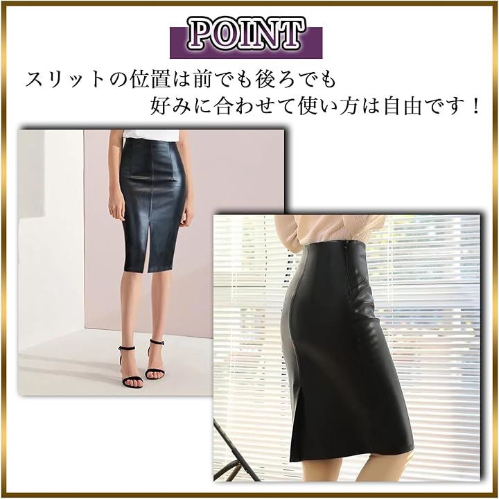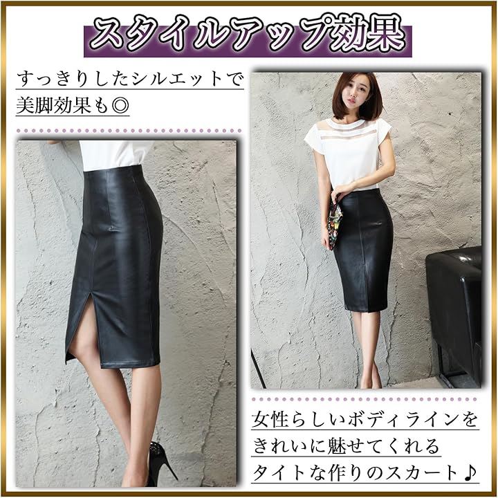 レザー タイト スカート 膝丈 シンプル スリット puレザー ハイウエスト セクシー コスプレ ペンシルスカート レディース