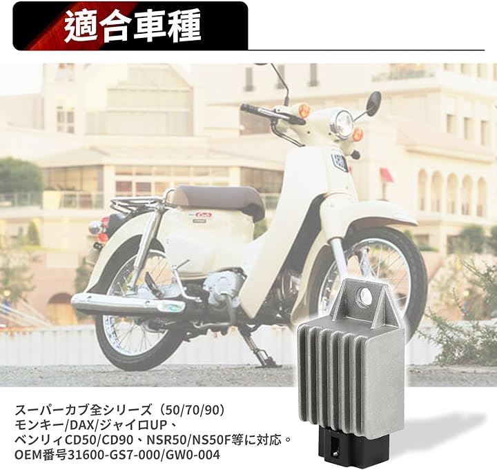 互換品 12V 4ピン整流器 レギュレーター 耐久性向上 ヒートシンク設計対応|ホンダ モンキー/スーパーカブ/JAZZ NSR50/ジャイロ/DAX/ベンリィCD50/CD90他