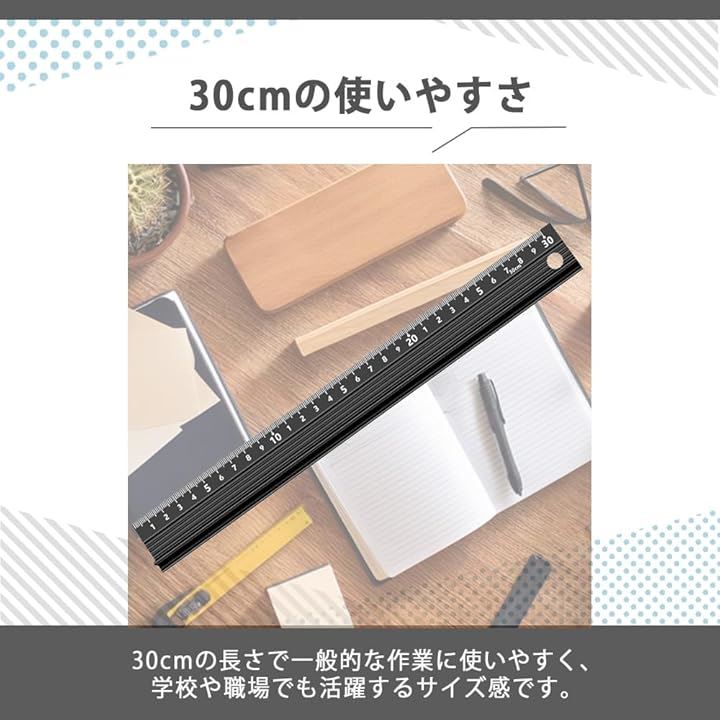 定規 30cm ものさし アルミ定規 カッター 滑り止め 持ち手付き
