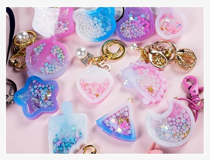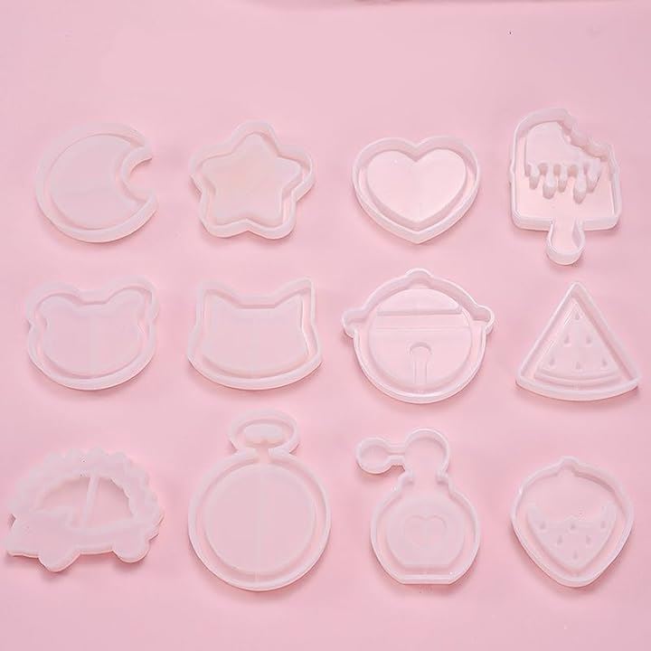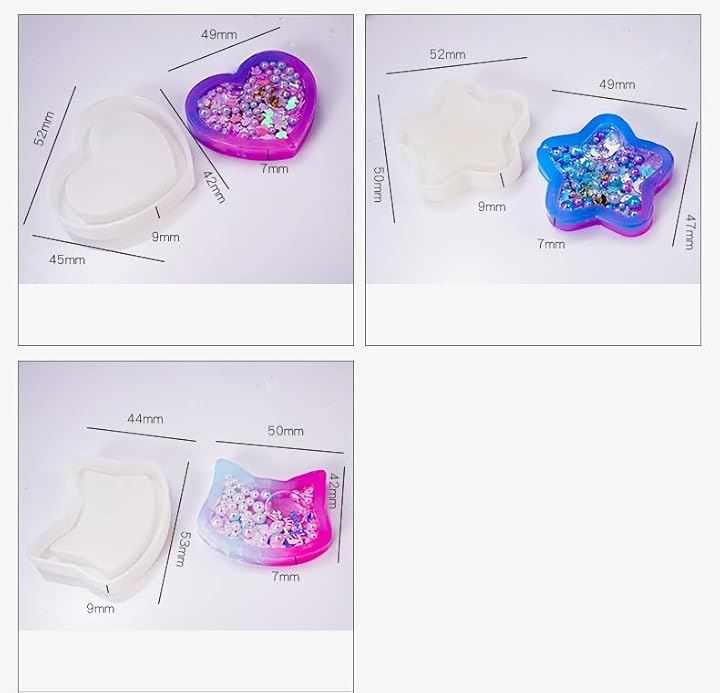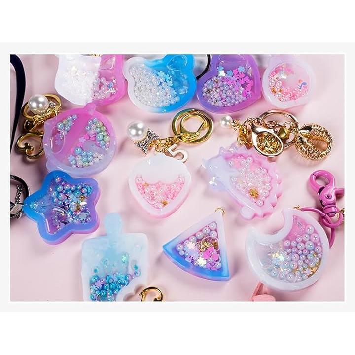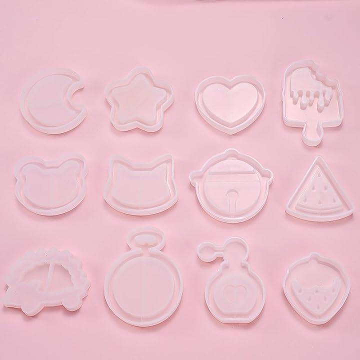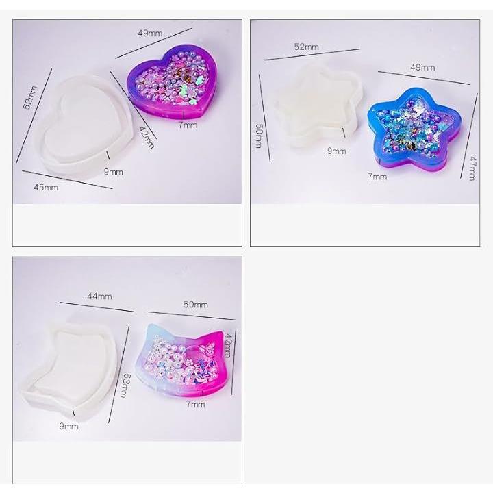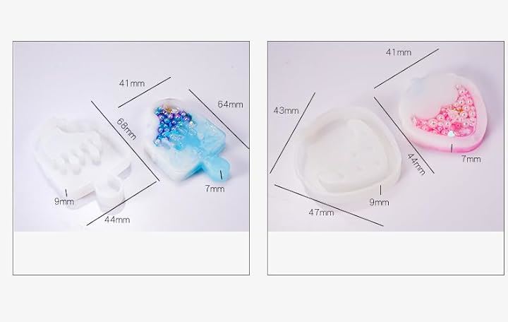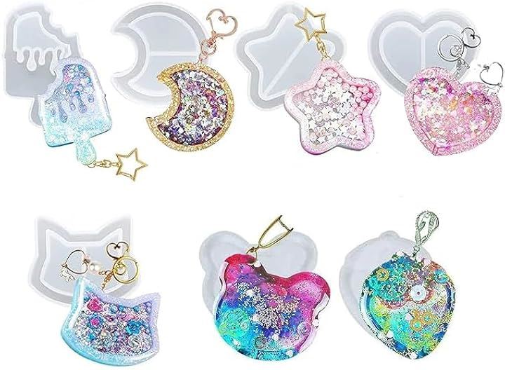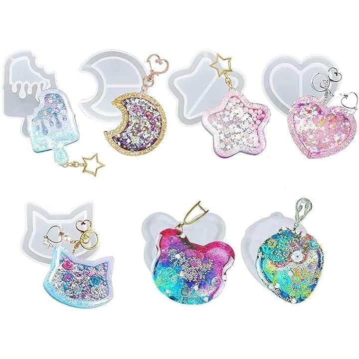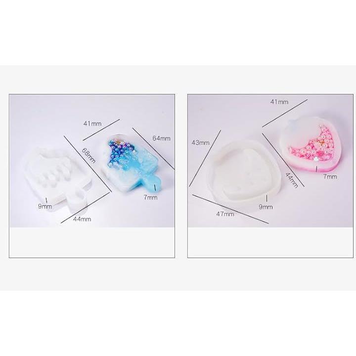 シリコンモールド 7個セット 流砂型 ペンダント用 小動物 ハート アイスクリーム DIY 再利用可能