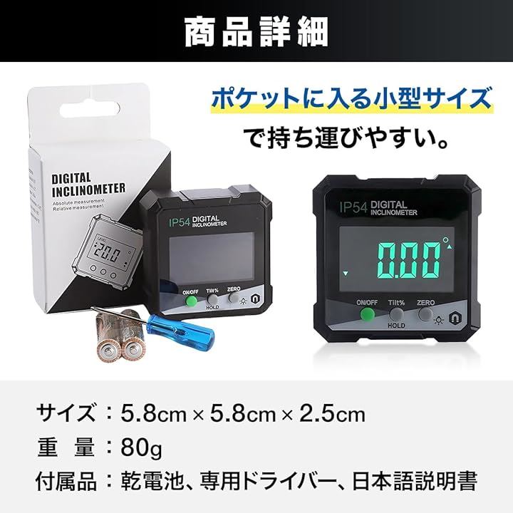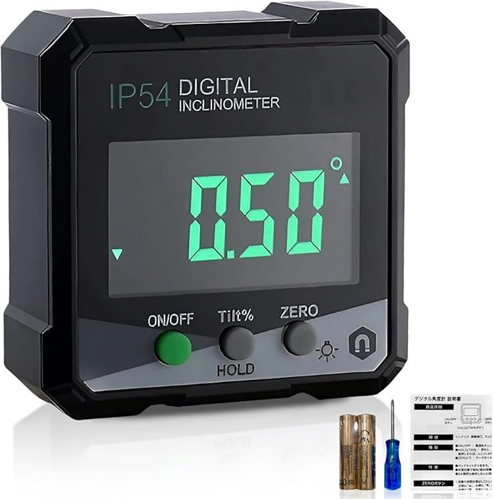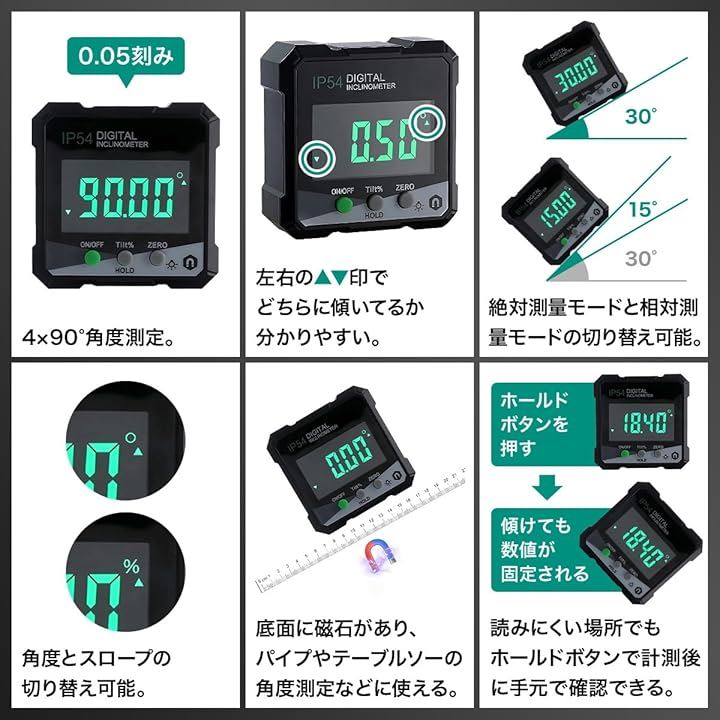 デジタル角度計 IP54 防水防塵 ±0.2° 角度測定器 傾斜器 水平器 分度器 小型 日本語説明書