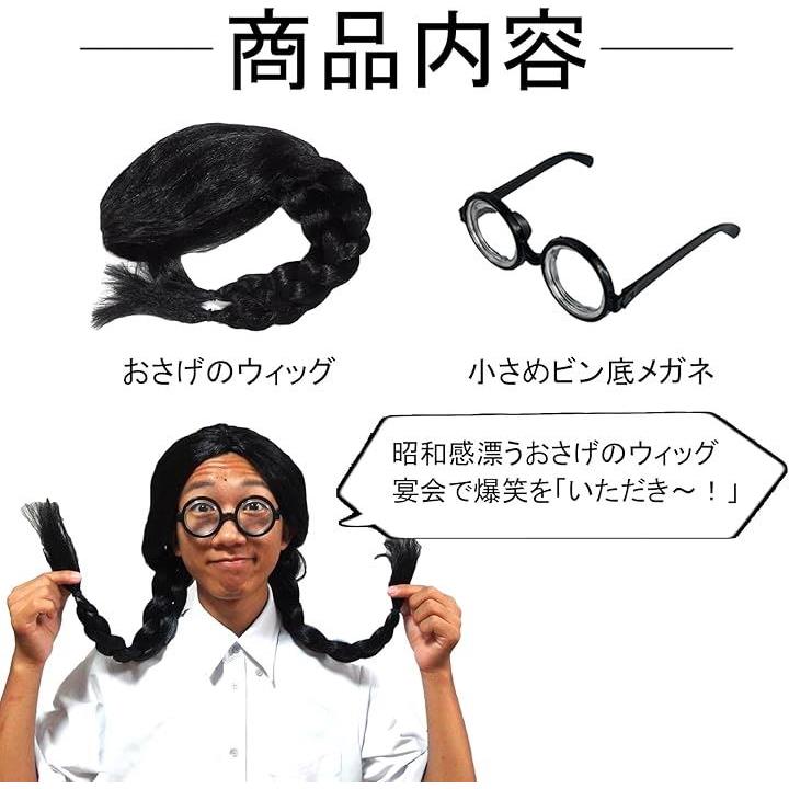 おさげ かつら ウィッグ コスプレ ビン底メガネ 真面目 ガリ勉 三つ編み 宴会 ネタ 黒髪 中分け