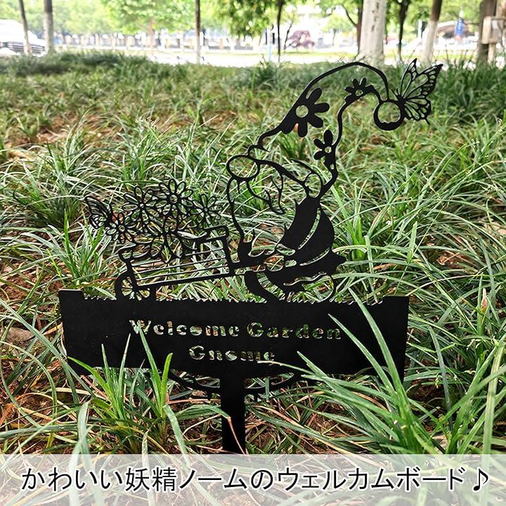 ガーデニング 雑貨 ウェルカム ボード アイアン プレート 妖精 ノーム オブジェ ガーデンピック