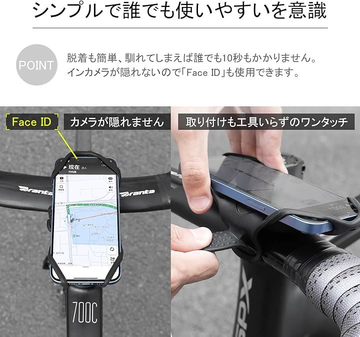 自転車 スマホホルダー シリコン 振動吸収 ワンタッチ 取り外し コンパクト ケース 対応
