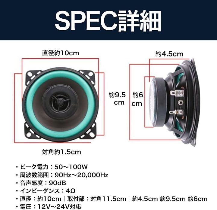 スピーカー カーオーディオ サブウーファー 車 speaker オーディオスピーカー ハイゼットジャンボ 50W 150W 2個 4インチ