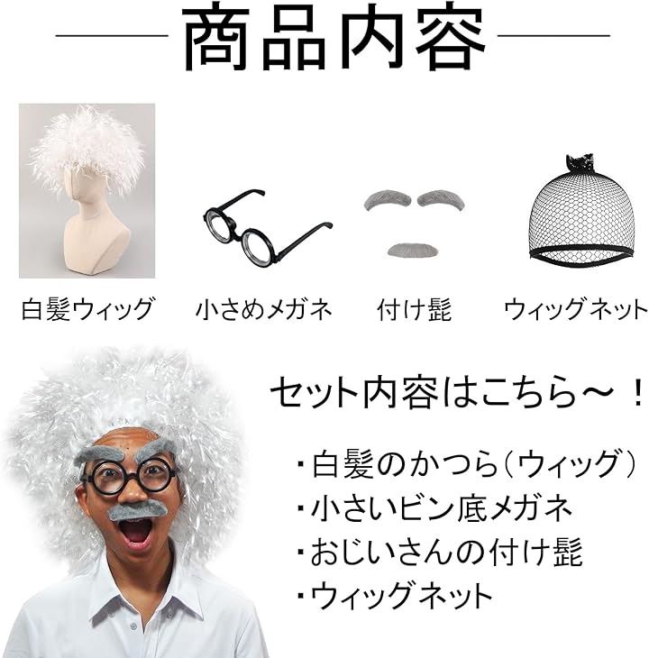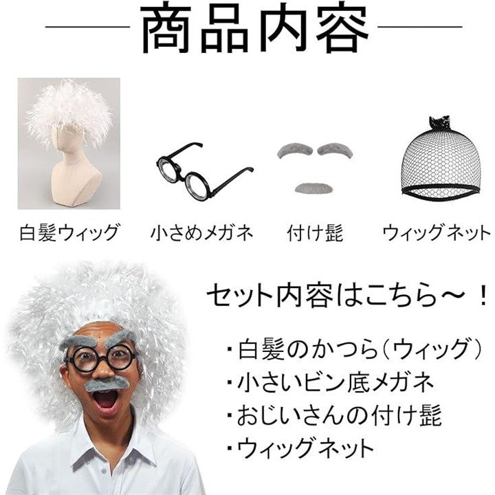 博士 かつら コスプレ 白髪 ウィッグ メガネ ヒゲ 科学者 おじいさん 宴会 ネタ