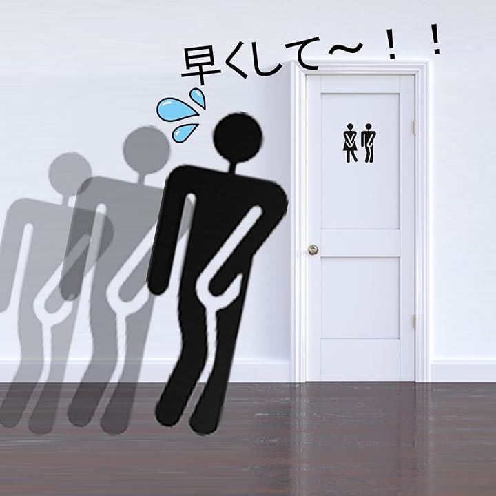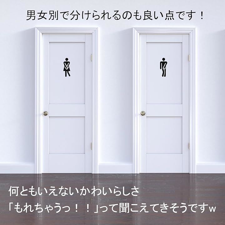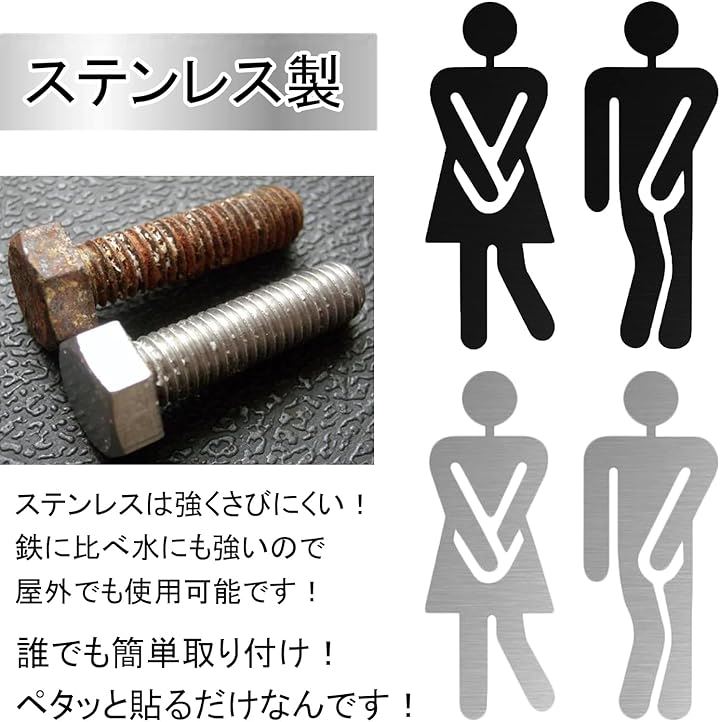 もれちゃう 面白い トイレマーク ステンレス プレート ステッカー シール 男女別 セット