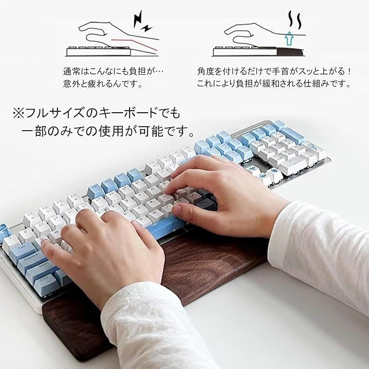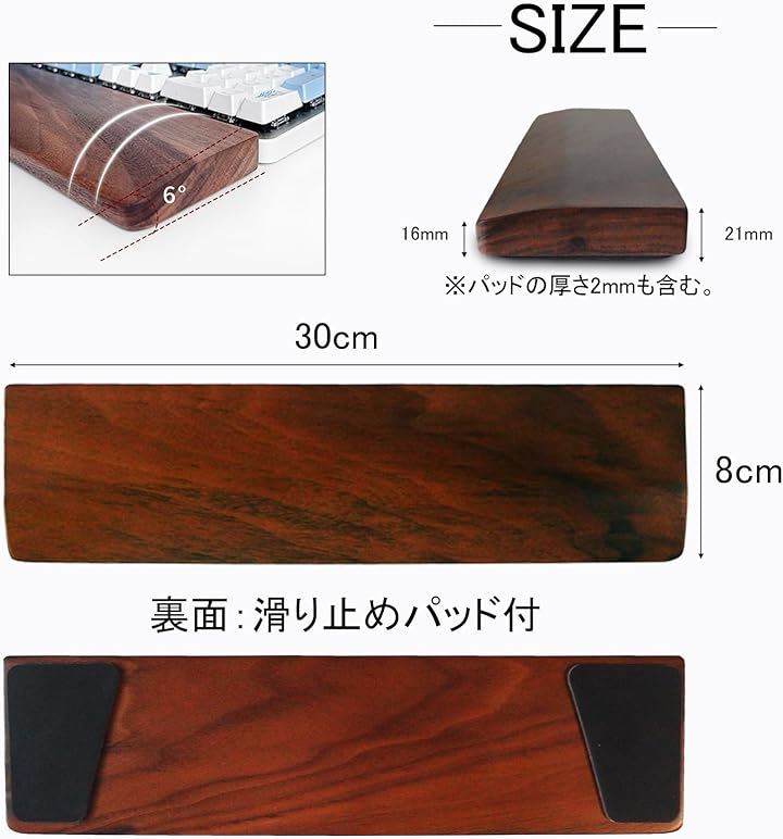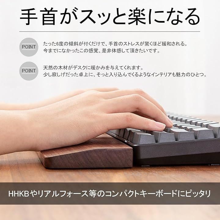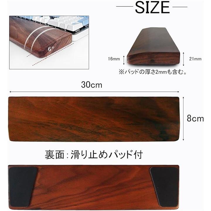 木製 パームレスト リストレスト 60% キーボード 滑り止め 薄型 ウォールナット 傾斜
