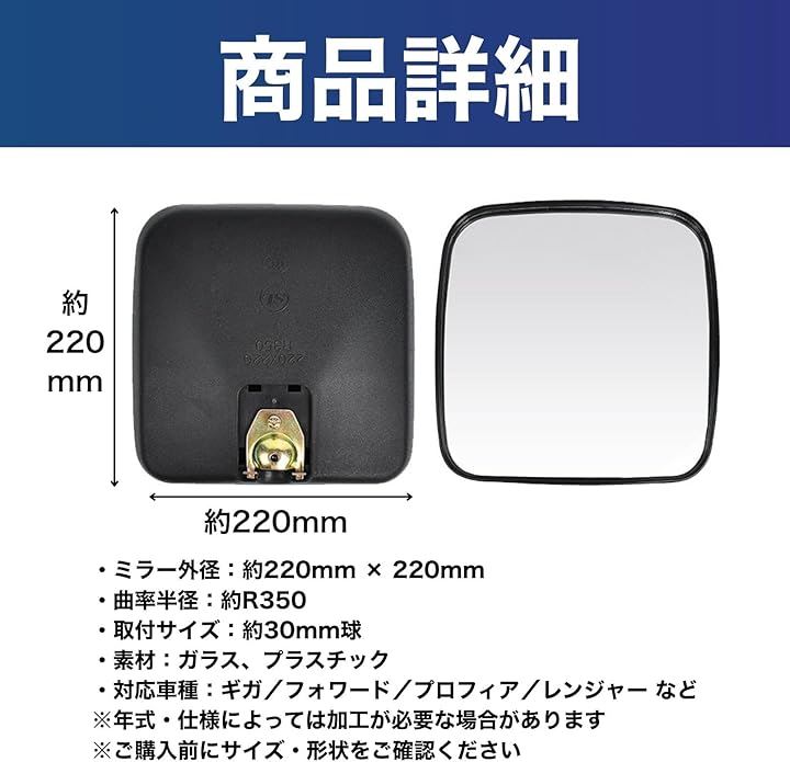 互換品 サイドアンダーミラー トラック 補助ミラー 220mm R350 ギガ フォワード プロフィア レンジャー