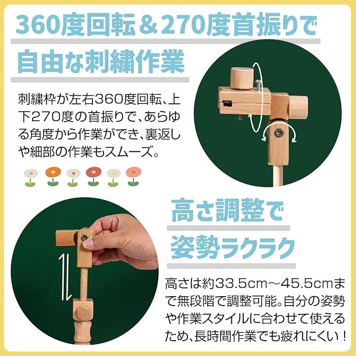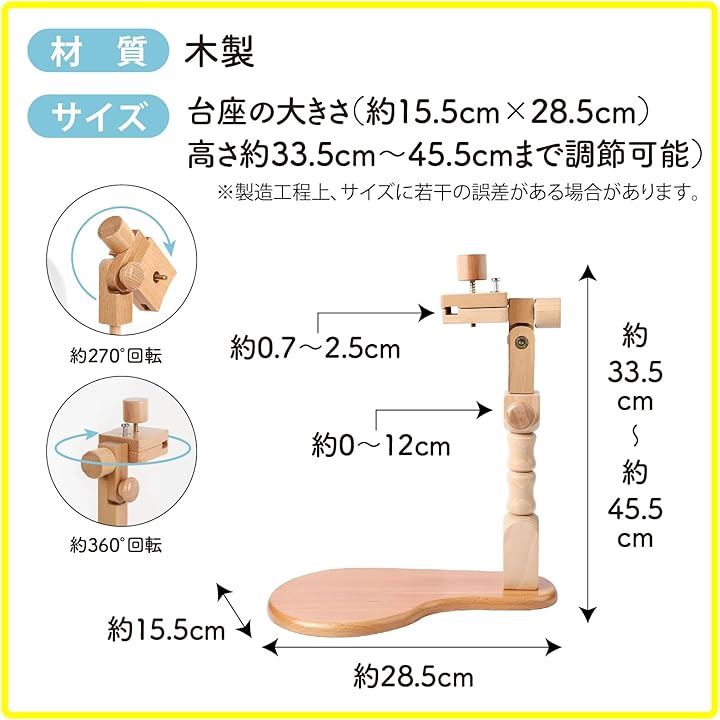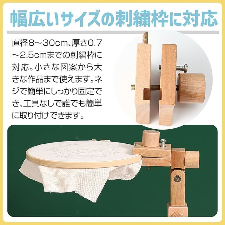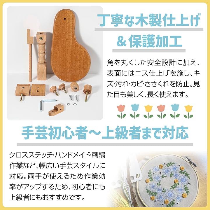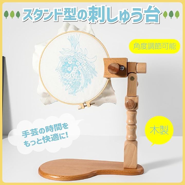 木製刺しゅう台 卓上スタンド 手芸用 高さ調節可 ハンドメイド