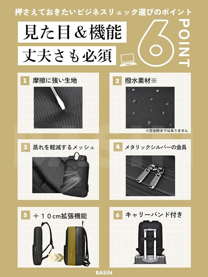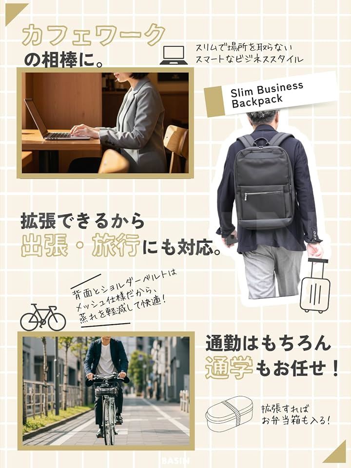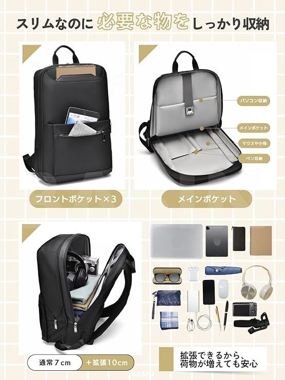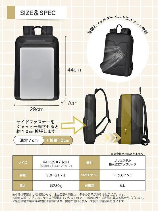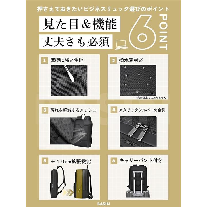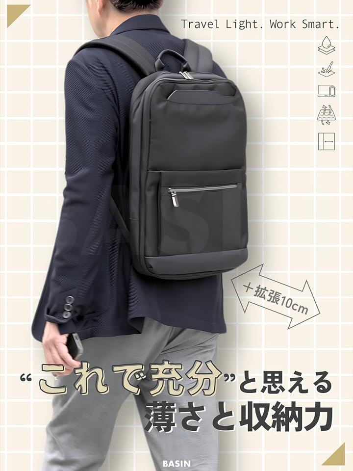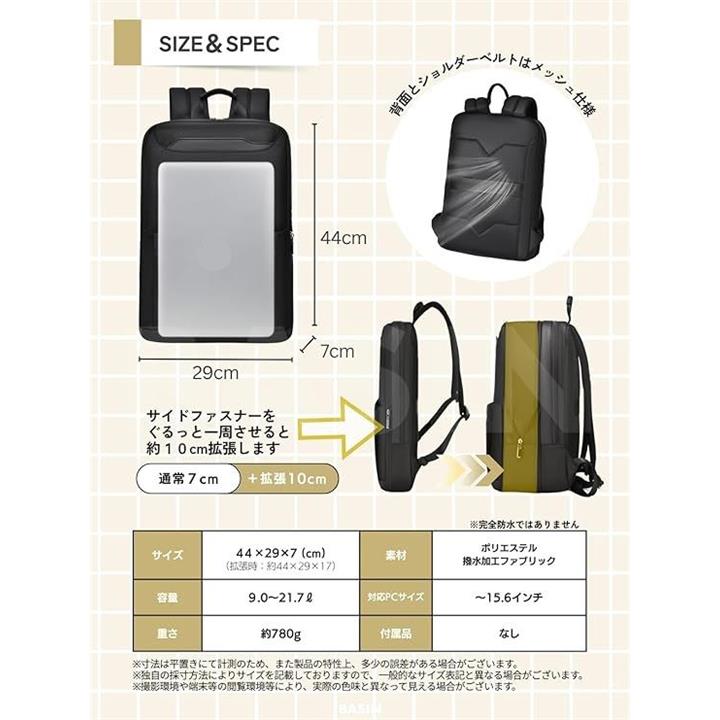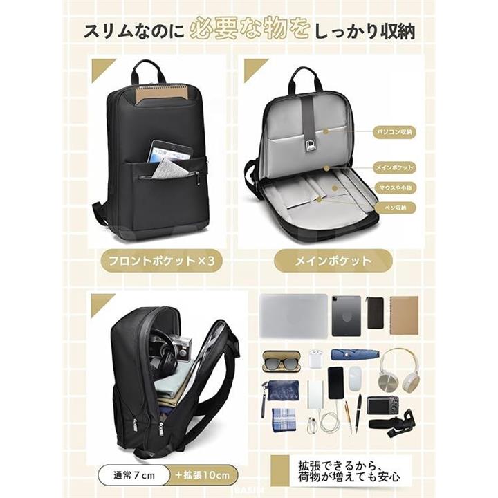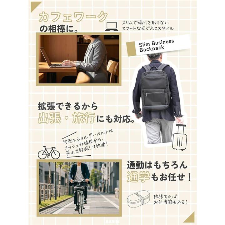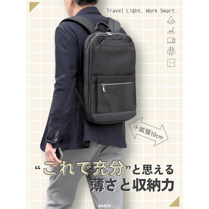 ビジネスリュック 薄型 出張 バッグ メンズ レディース 軽量 撥水 通勤 通学 拡張機能 多機能 スリム メッシュ仕様 A4・PC収納