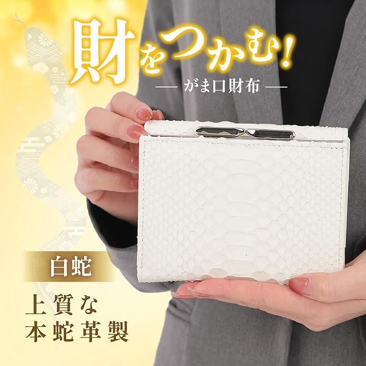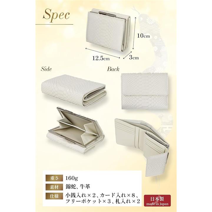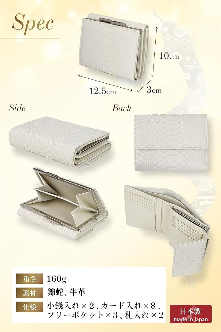 白蛇 パイソン レザー 新型 がま口財布 レディース 錦蛇 蛇革 金運 開運 日本製