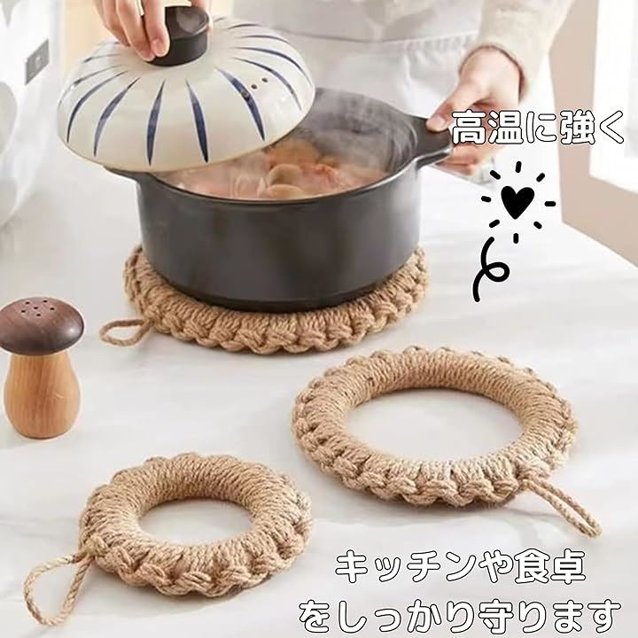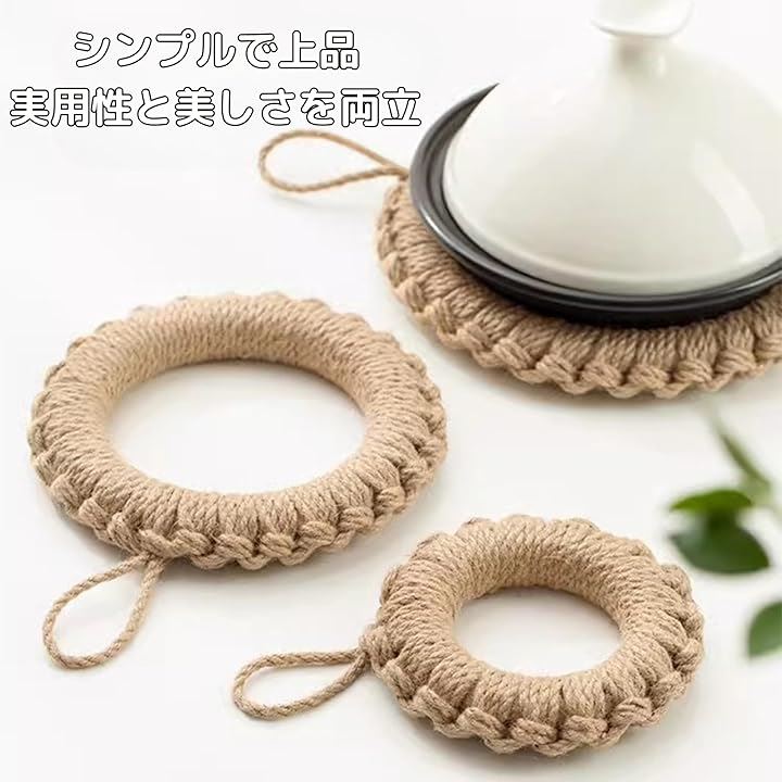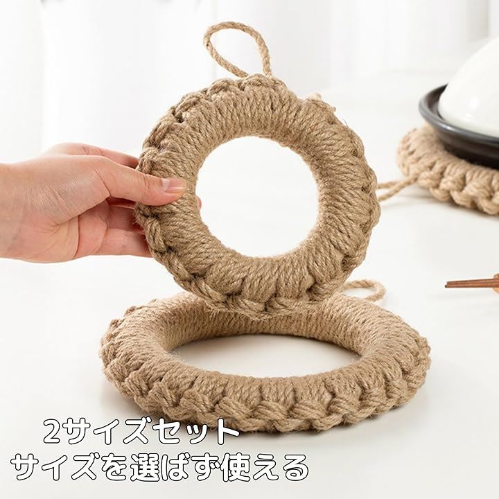 2個セット 釜敷き なべしき 耐熱 フック付き 自然素材 ポットマット シンプル インテリア