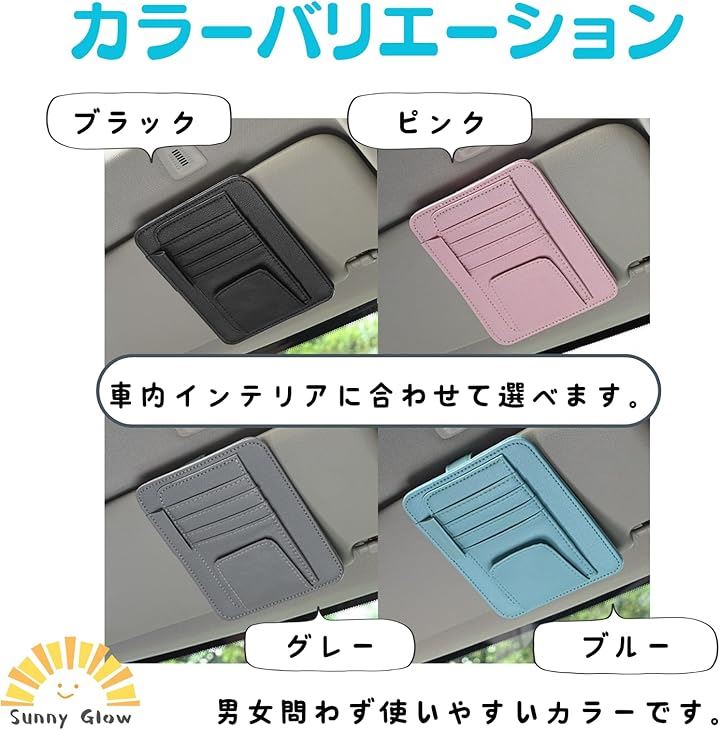 サンバイザー収納ポケット 車内整理 小物入れ 多機能収納 小物整理 PUレザー製 便利グッズ カー用品 カードホルダー