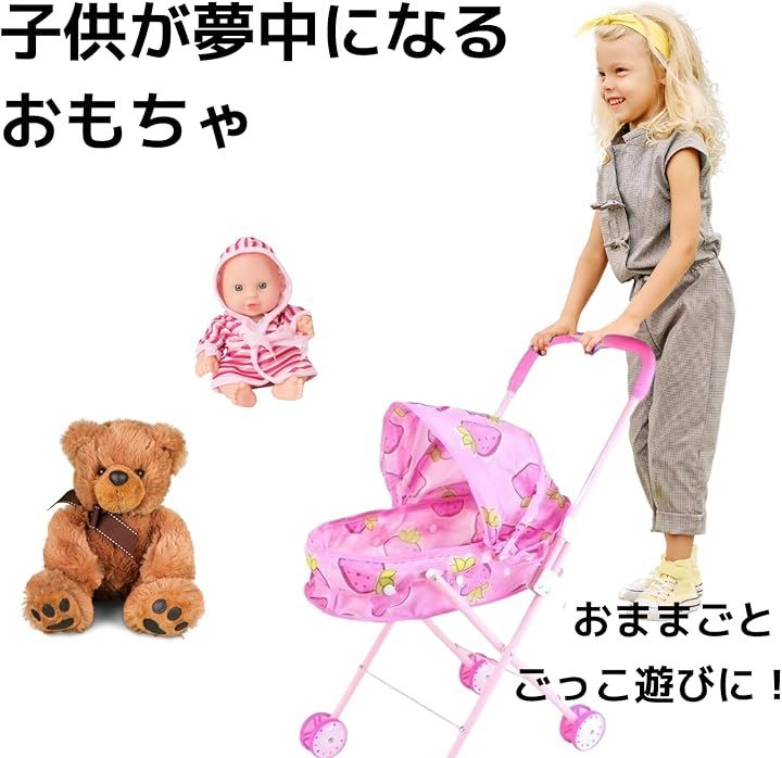ベビーカー おもちゃ 人形用 ドール バギー キッズ トイ おままごと 乳母車 ごっこ遊び 子供 お世話練習 誕生日 プレゼント