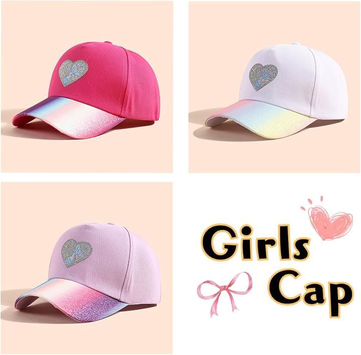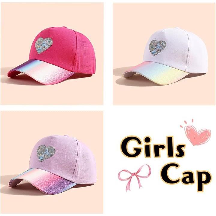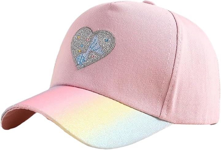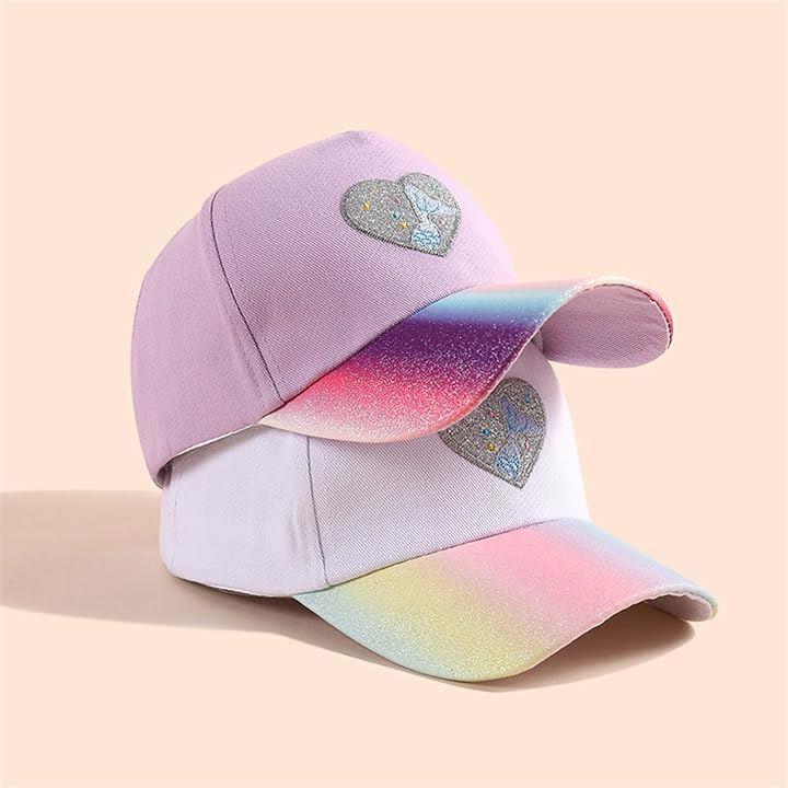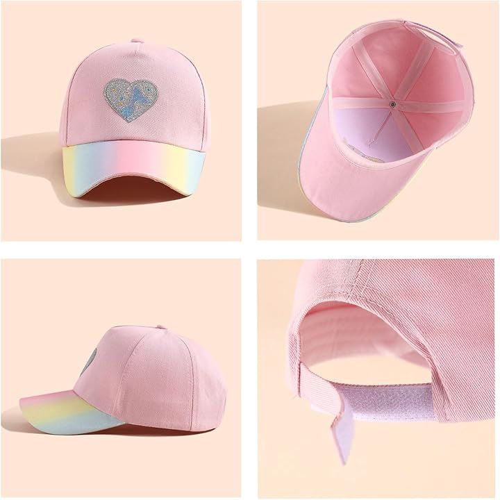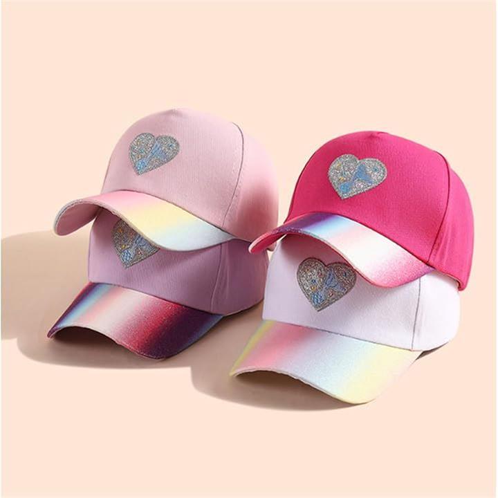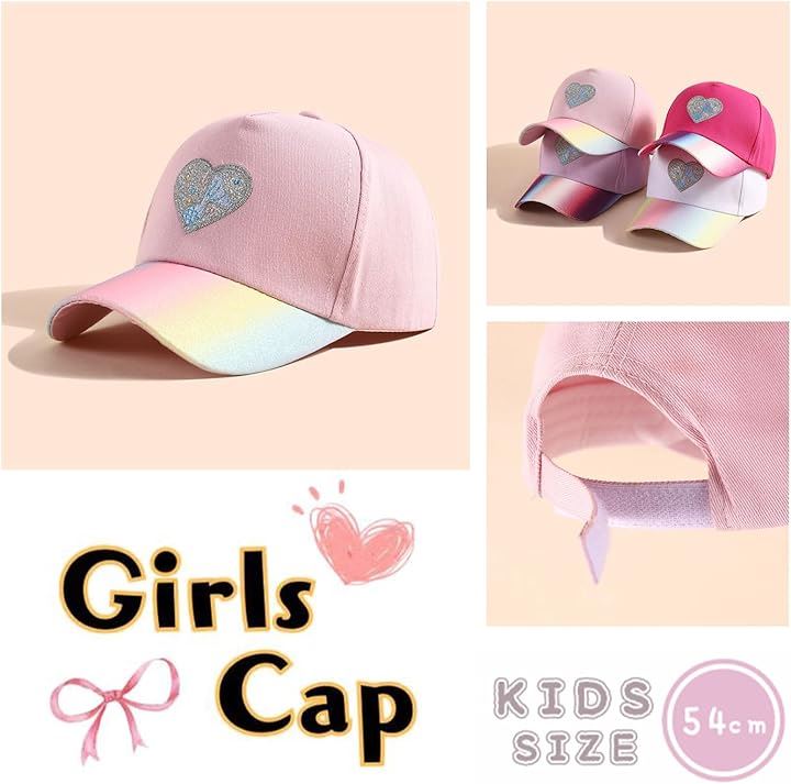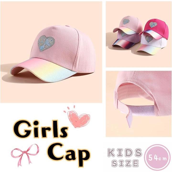 キッズ 女の子 キャップ ハート レインボー ラメ 帽子 可愛い パステル カラー 日除け 小学生 子供 サイズ 調整 4カラー 園児 幼稚園 かわいい キャラクター ベースボール