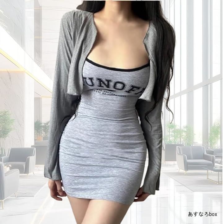 タイトワンピース レディース キャミソール ミニ丈 スリム ロゴ入り ストレッチ ボディライン ショートドレス お出かけ