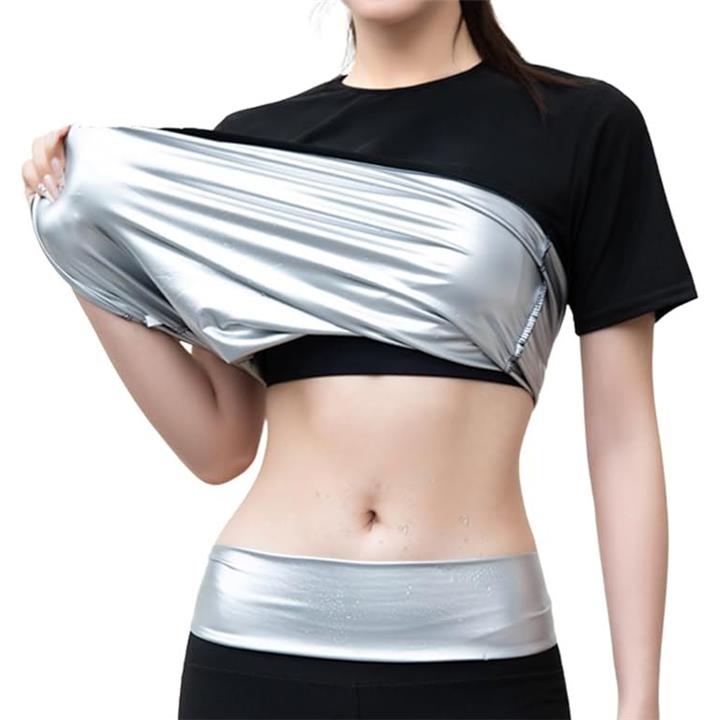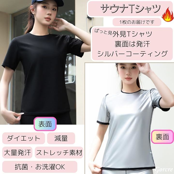 サウナスーツ 半袖 Tシャツ レディース 大きいサイズ インナー 発汗 トレーニング ウェア 伸縮 ストレッチ 洗濯可