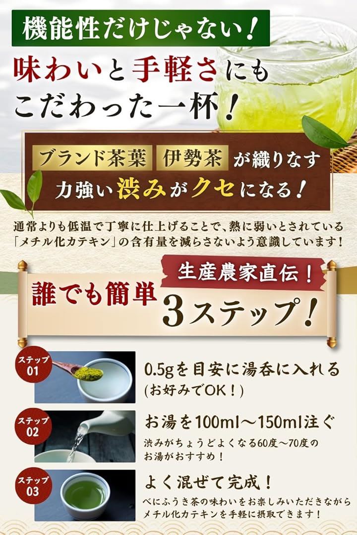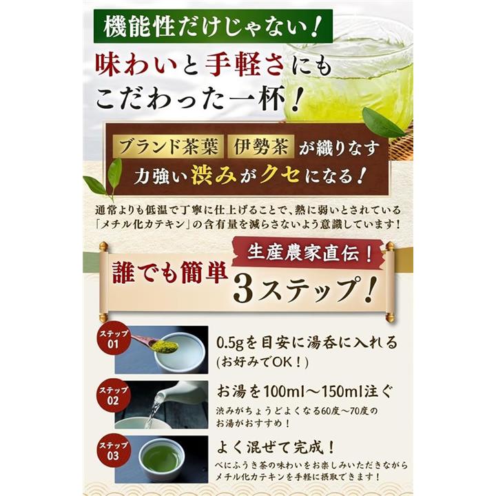 創業昭和33年老舗茶農家製造 奇跡のべにふうき べにふうき緑茶 粉末 100g 三重県産 約200杯分 メチル化カテキン高濃度配合
