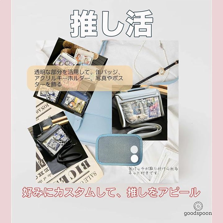 痛バッグ 推し活 自分だけ 飾り付け スタイル 楽しむ サッチェルバッグ 軽い キャラクター アイドル グッズ クリアポケット 透明 PVCカバー